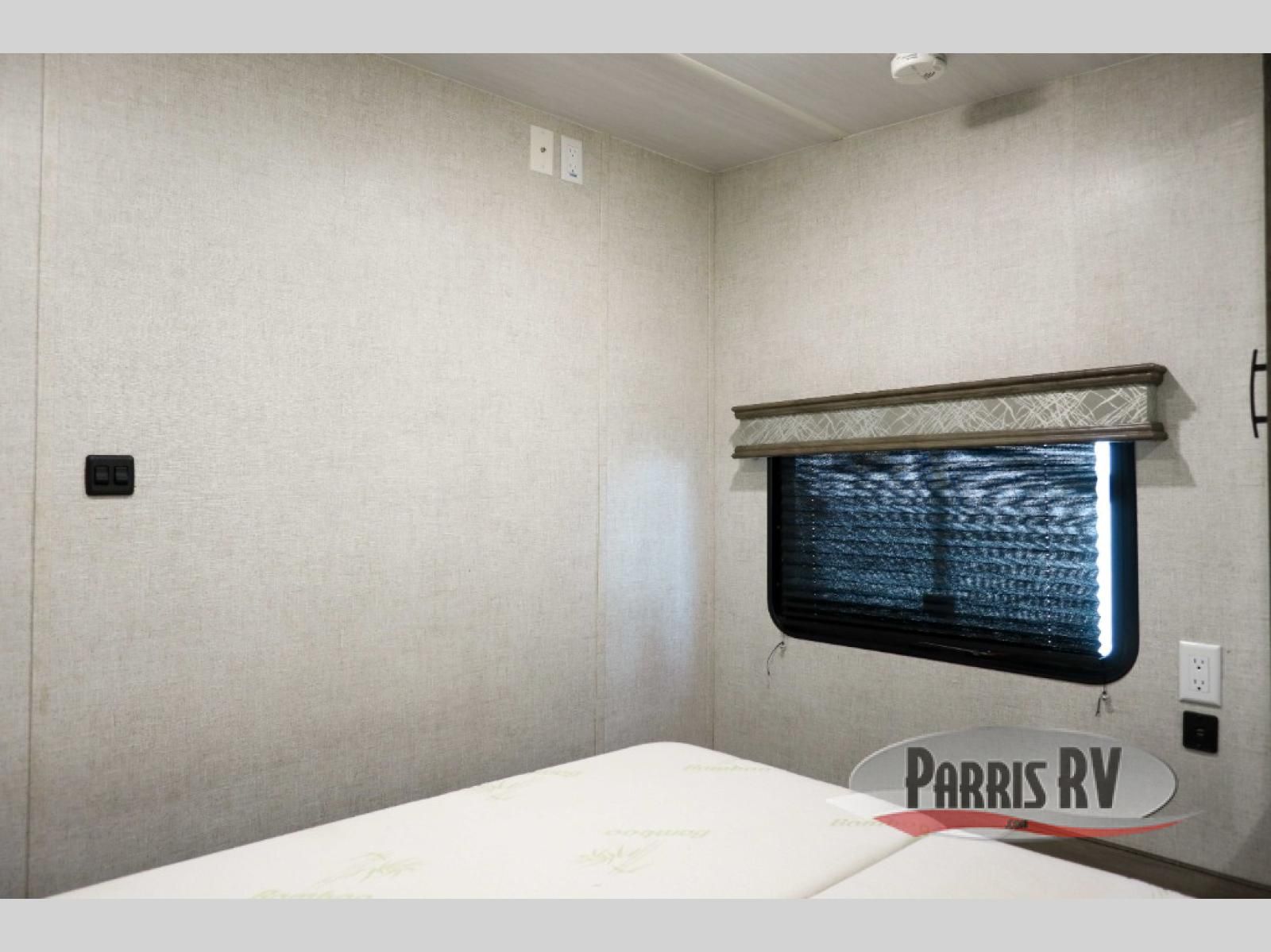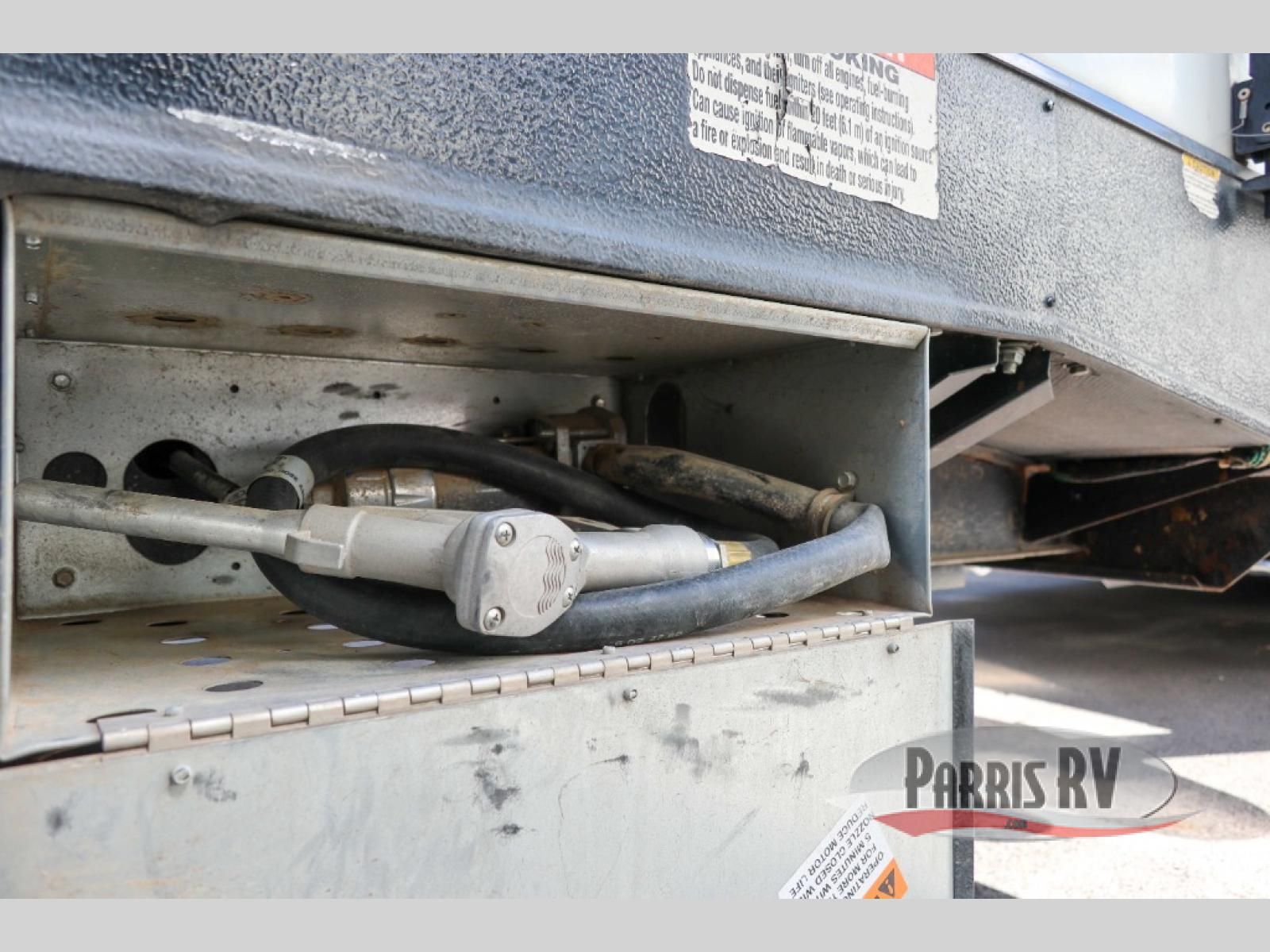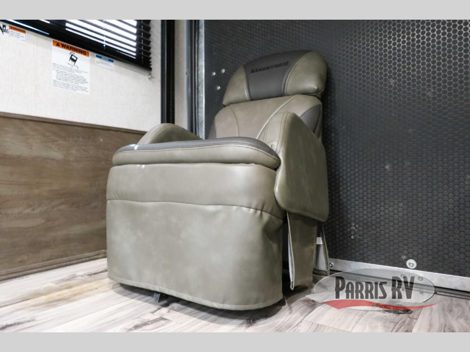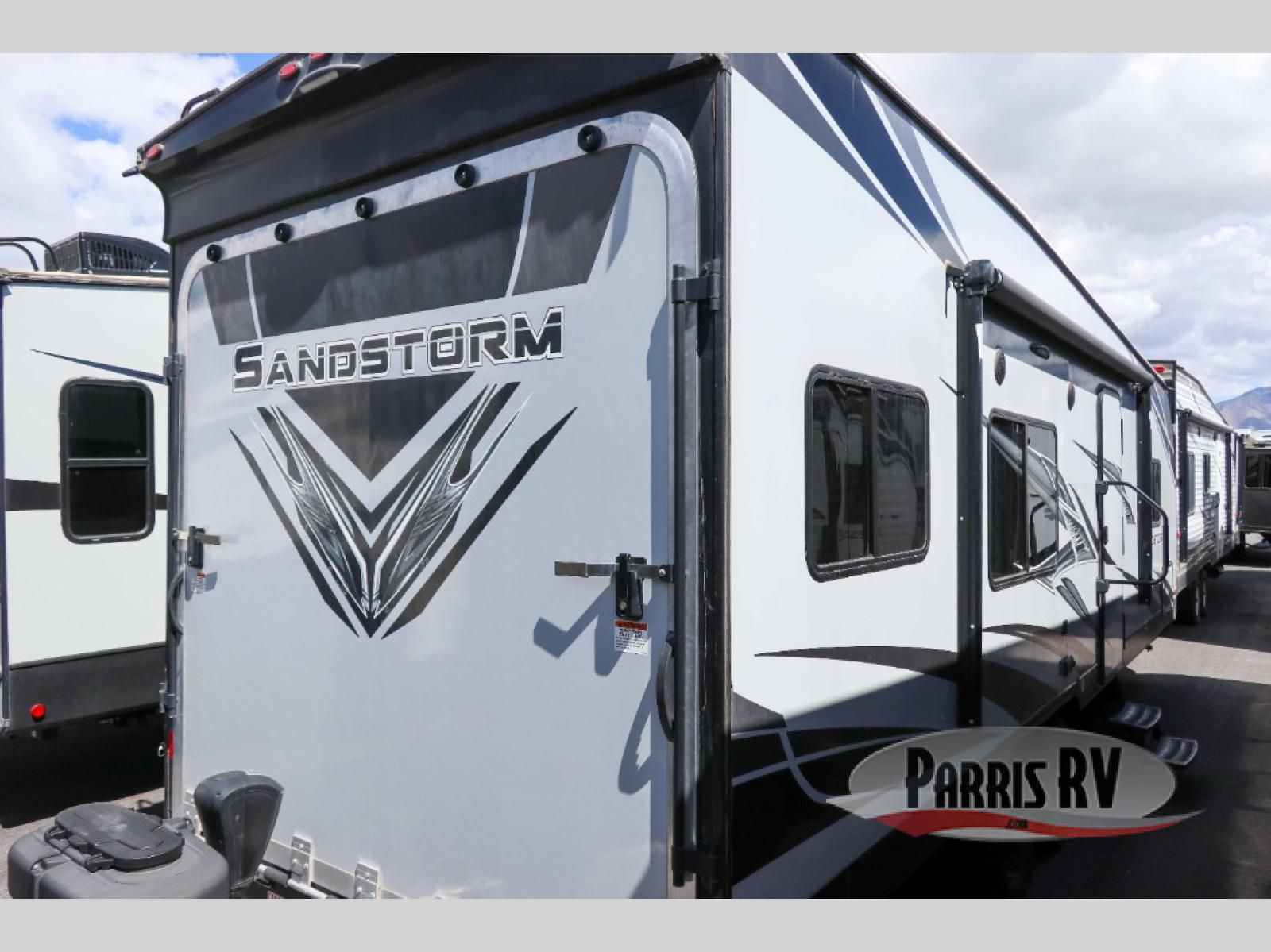 If you and your spouse enjoy hitting the trails, then this Sandstorm toy hauler with a fiberglass exterior is for you! You can easily load and unload your off-road toys with the 3,000 lb. ramp door, and the tie-downs are mounted into steel so that you can be sure your toys will arrive safely. When you're ready to wind down your nights, you can head into the front private bedroom and relax on the queen-size bed or entertain a few guests at the electric pass-through dinette which can also transform into an extra sleeping space. You can even choose to add the optional chairs with table for a comfortable place to read a book at night!
