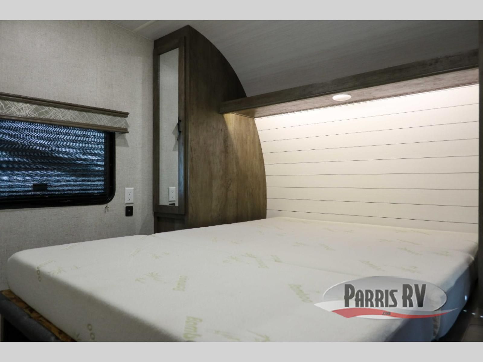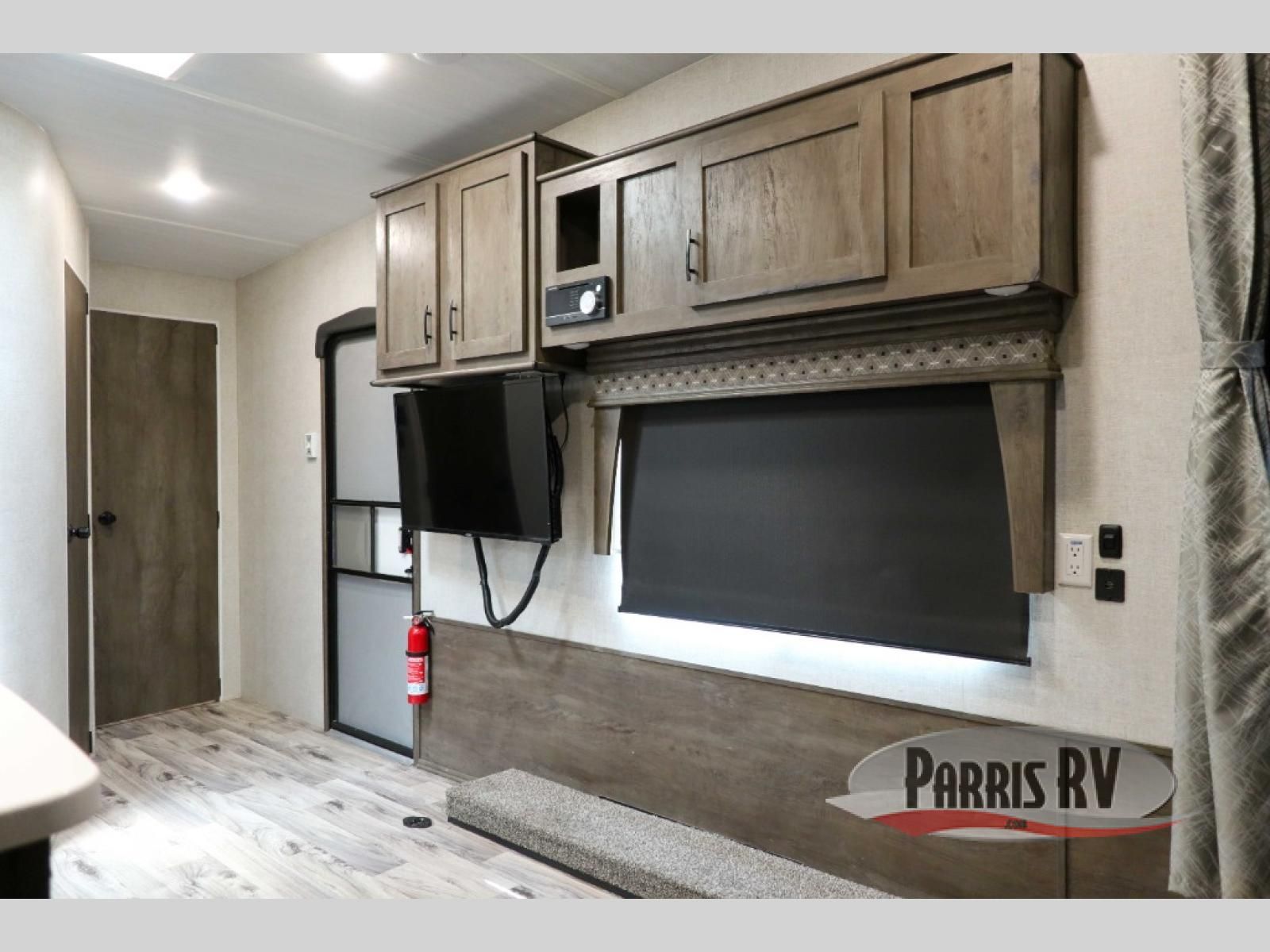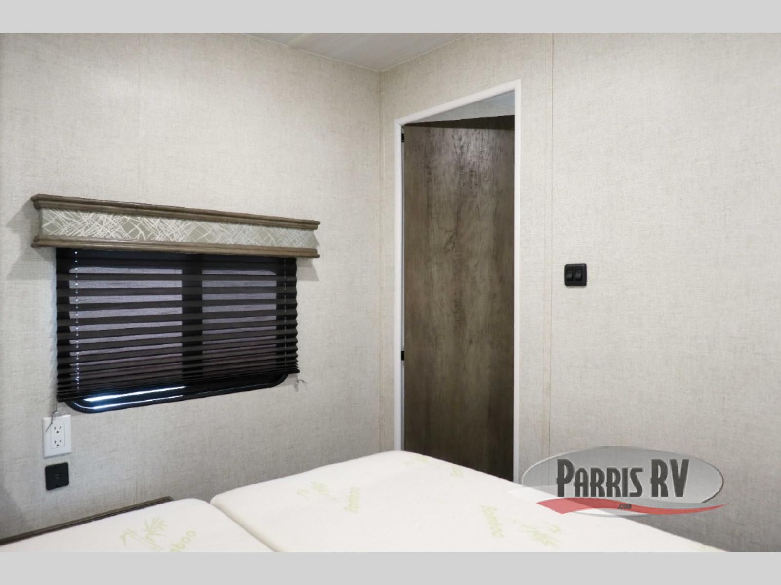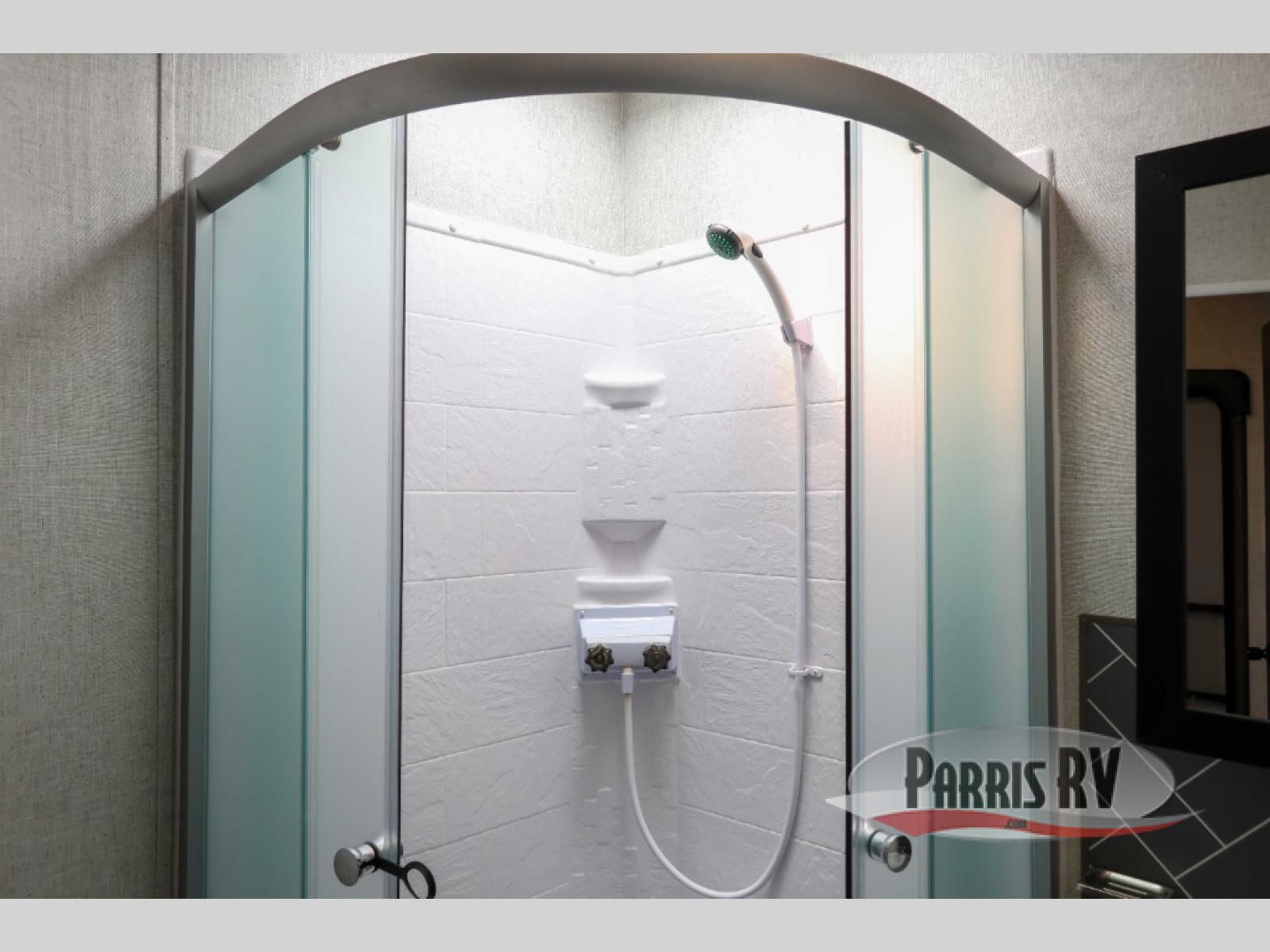 If you and your spouse enjoy hitting the trails, then this Sandstorm toy hauler with a fiberglass exterior is for you! You can easily load and unload your off-road toys with the 3,000 lb. ramp door, and the tie-downs are mounted into steel so that you can be sure your toys will arrive safely. When you're ready to wind down your nights, you can head into the front private bedroom and relax on the queen-size bed or entertain a few guests at the electric pass-through dinette which can also transform into an extra sleeping space. You can even choose to add the optional chairs with table for a comfortable place to read a book at night!