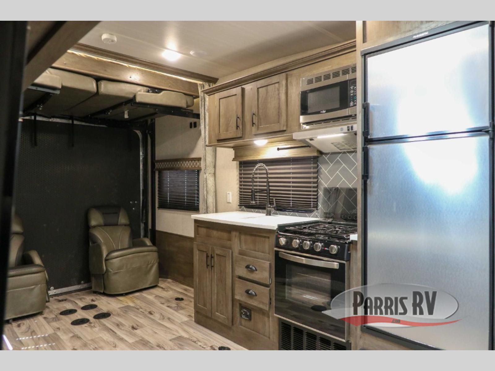 Load your four-wheeler into any one of these Forest River Sandstorm fifth wheel toy haulers or travel trailer toy haulers before heading to the dunes or the campsite with your family! They are constructed with a one-piece seamless walk-on PVC roof and super lube axles with self-adjusting brakes to ensure you will safely arrive. Your toys will also arrive safely with the 1,200 lb. black tie-downs mounted to steel, and loading them up will be easy with the 3,000 lb. grey ramp door. Plus, they have a 102" wide-body construction for more walking around space. With a fully equipped kitchen and a pillowtop mattress, you will feel right at home wherever you go!