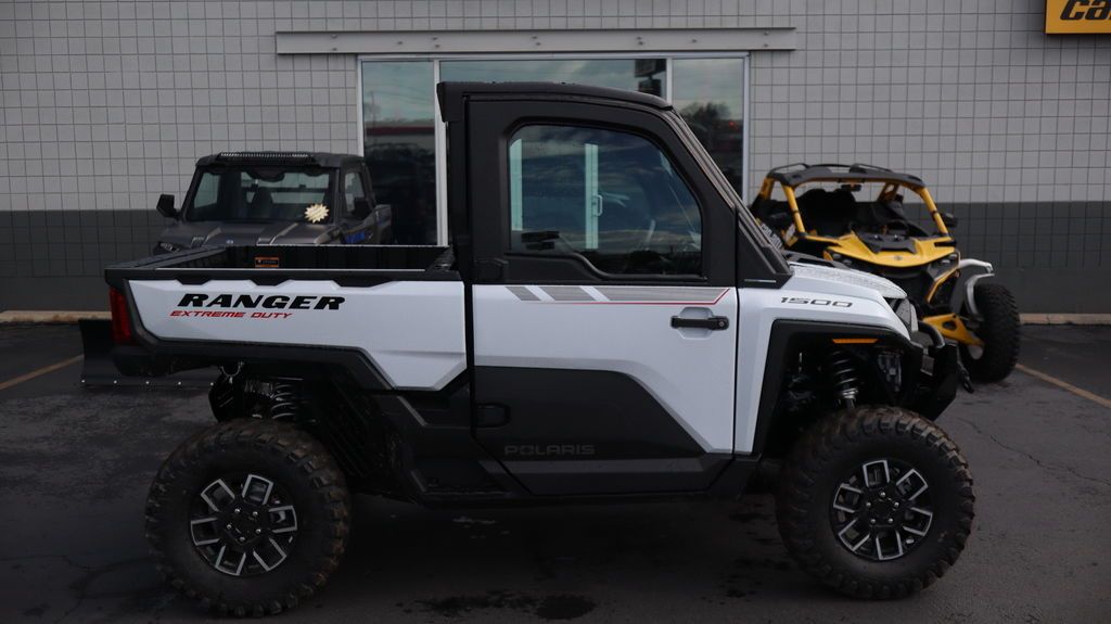 2025 Polaris® Ranger XD 1500 NorthStar Ultimate OUTWORK THEM ALL IN ANY WEATHER RANGER XD 1500 is the strongest, most capable, most comfortable RANGER. NorthStar offers all-season comfort thanks to a fully enclosed cab, HVAC, and elevated in-cab amenities. Features may include: Unlock Exclusive NorthStar Features Elevate your ride for work or play with NorthStar comfort and convenience. Climate control, connected tech, premium audio and more deliver an exclusive off-road experience. Complete Climate Control The upgraded heating and air conditioning (HVAC) system offers 5 different air flow settings and a recirculation setting to draw air from inside the cab instead of outside for faster, more efficient heating and cooling. RIDE COMMAND Elevate your off-road experience with the power of RIDE COMMAND—the original, nationwide off-road mapping system. UNPRECEDENTED CAPABILITY RANGER XD 1500 is engineered to tackle the toughest jobs with industry-leading capability. Power Your Productivity RANGER XD 1500 is powered by a 3-cylinder ProStar 1500cc engine. It pumps out an industry-leading 110 HPand 105 lb.-ft. of torque for effortless hauling and towing and confidence on tough terrain. Haul More in Less Time Save time with fewer trips and heavier loads with a 1,500-lb. cargo box capacity, a 50% larger box volume than full-size UTVs. BRUTE STRENGTH Engineered to be stronger and more durable in nearly every way, featuring longer service intervals, a high-strength, heavy-duty steel chassis, and the industry-exclusive STEELDRIVE transmission. Smooth, Precise Control STEELDRIVE is electronically controlled to deliver outstanding drivability. Enjoy smooth, predictable throttle engagement and precise low-speed control when backing up to trailers, navigating rough terrain, or spraying a fence line. Easy Shifting, Quiet Operation Easily shift between drive, park and reverse gears with a consistent, predictable feel and less effort. The fully sealed design reduces operating noise for a quieter, more enjoyable ride. Confidently Navigate Hills Confidently navigate challenging terrain. For maximum control when driving uphill, Hill Assist engages the transmission to prevent the vehicle from rolling backwards when you let off the brakes or gas. Downhill, the transmission remains engaged to assist in controlling descent. 110 HP ProStar 1500cc Engine & STEEDRIVE Transmission 3,500 Lb. Towing Capacity & 1,500 Lb. Box Capacity Lock & Ride MAX Accessory Integration Heated Seats and JBL Audio System Factory-Installed Heating & Air Conditioning (HVAC) System Electronic Cargo Box Lift and 12V Cargo Box Power Port Polaris Pro HD 6,000 Lb. Winch LED Cargo Box Light and Overhead Switch Panel 30" Kenda CrossTrail Tires & 15" Wheels 7" Display, Powered by RIDE COMMAND, with Factory Rear Camera RIDE COMMAND+ Technology