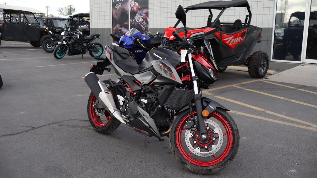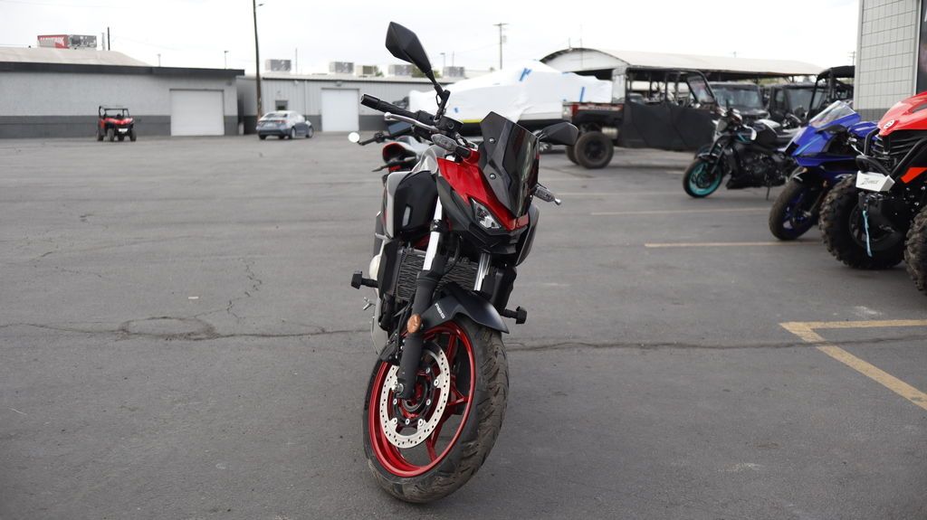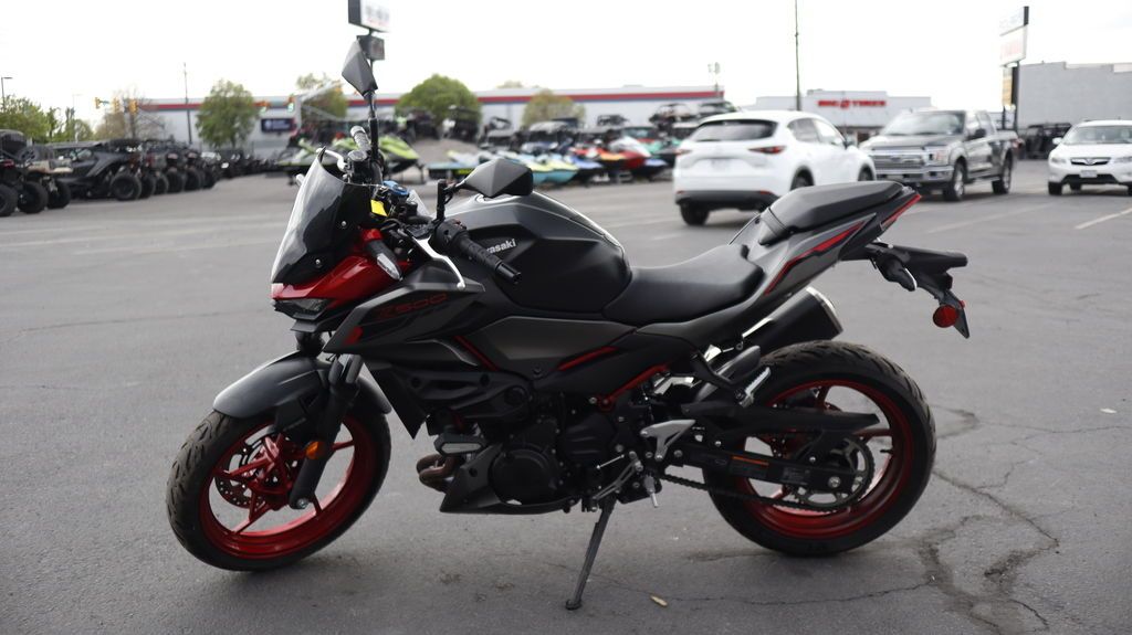 2024 Kawasaki Z500 SE ABS All eyes are on you when riding the all-new Z500 ABS supernaked. With distinctive bodywork and a powerful 451cc engine, this aggressively styled streetfighter is for those who are not afraid to be seen. The Z500 ABS provides the ideal platform for a wide range of riders to put their true colors on display. Features may include: POWER LIGHT. FUN. FIERCE. The all-new Z500 ABS supernaked is packed with potent yet approachable power for a wide range of riders. HANDLING SMOOTH MOVES The foundation of the Z500 ABS is a lightweight trellis frame, which works with the excellent suspension to deliver a nimble, confident, and effortless ride. ERGONOMICS A RELAXED RIDE WITH SUPERIOR COMFORT The relaxed rider triangle accommodates a wide range of riders and riding situations, giving the Z500 ABS a rider-friendly character. The relatively upright riding position and wide handlebars put the rider in the ideal position for active control, facilitating dynamic, sporty riding. STYLING SUPERNAKED STYLE An all-new front-end design and classic Sugomi™ design elements like its crouching stance and upswept tail give the Z500 ABS an unmistakable silhouette. Special Edition color and graphics High-grade full color TFT display LED turn signals Meter cover (smoke) Pillion seat cover Frame sliders USB-C outlet Tank pad Knee pads Radiator screen Under cowl