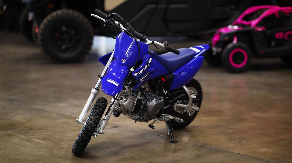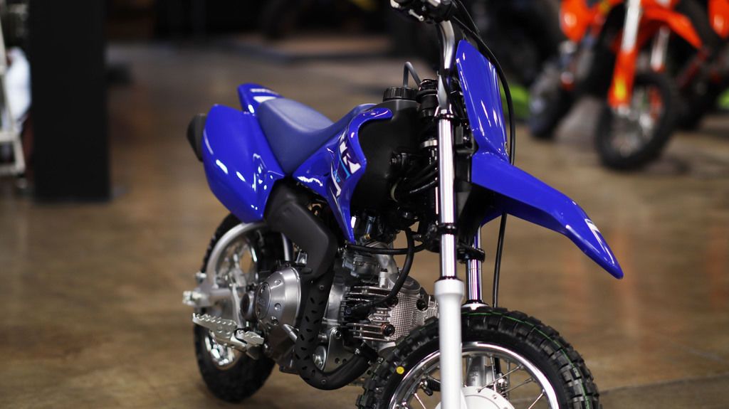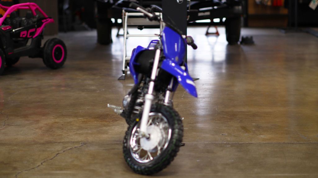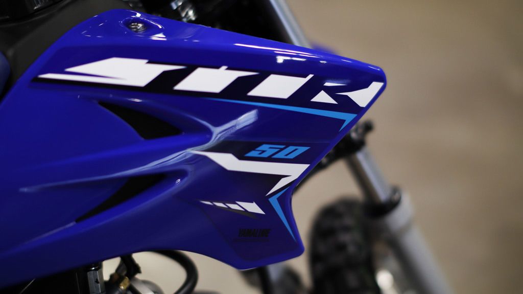 2026 Yamaha TT-R50E THE FUN STARTS HERE The push-button electric start, three-speed automatic transmission and adjustable speed restrictor make this the ideal bike to teach the thrill of riding. Features may include: ENGINE Useable, Entry-Level Engine The 49cc air-cooled SOHC powerplant puts out smooth, reliable four-stroke power that is perfect for kids and smaller beginners. Automatic Clutch Three-speed gearbox with automatic centrifugal clutch makes learning to shift gears a breeze. Convenient Electric Start Convenient push-button electric start feature for effortless engine startup. Compact Engine Compact design keeps overall engine width down for a narrow feel and great handling. Responsive Power Crisp, dependable throttle response from the 11mm Mikuni® VM-type carburetor with automatic on/off electric heater. CHASSIS/SUSPENSION Simple and Strong Frame The curved steel backbone frame keeps the TT-R50E narrow and has three engine-mounting points for excellent rigidity and handling. Compact Conventional Fork Conventional fork with 22mm sliders provides 3.8 inches of front wheel travel for great handling and a smooth ride. Lightweight Single Shock Monocross® rear suspension is controlled by a single coil-over shock and provides 2.8 inches of bump-smothering rear wheel travel. Enclosed Drum Brakes Front and rear 80mm drum brakes deliver strong, dependable stopping power, and the rear is activated by a right foot pedal just like the big YZs. Durable Knobby Tires Durable knobby tires mounted on 10-inch front and rear wheels offer great grip and exceptional wear. ADDITIONAL FEATURES Standard Security Key-type ignition switch deters unauthorized riding. Adjustable Restrictor Throttle stop screw lets the adult supervisor restrict speed while beginners are learning. Racing Style Cool looking competition-style YZ bodywork includes an integrated front fender and number plate. Folding Side Stand Standard side stand tucks up out of the way when not in use. Grippy Foot Pegs Large folding, cleated foot pegs provide excellent footing.