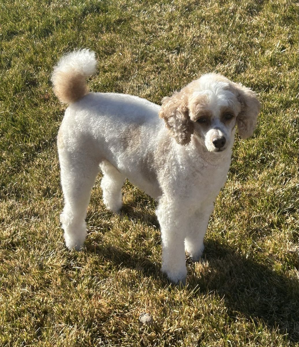 Mustang Gunslinger aka Gunner is a gorgeous red and white Toy Poodle. He is AKC/UKC/CKC registered. 12 lbs. He has been dna health tested through Embarkvet and Animal Genetics. He is PennHip certified as well as cardiac, elbows, eyes and patellas. He is a proven stud and produces absolutely adorable puppies. Not only is Gunner a perfect match for poodles, he also is a perfect match for Goldendoodles, Cavapoos, Aussiedoodles and Sheepadoodles. Gunner is very sweet and passes his amazing temperament onto his puppies. We do offer shipped semen as well as onsite AI We are also happy to meet at South Mountain Reproduction or Riverside Petcare.