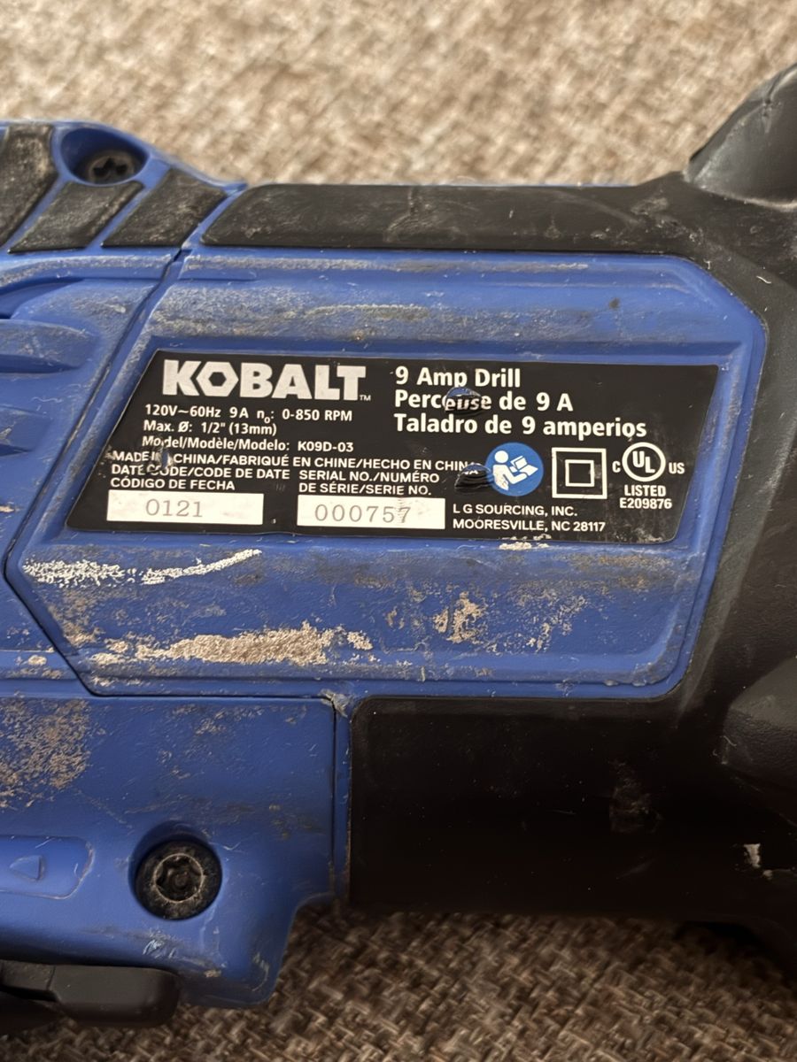 Nice heavy duty Kobalt drill in good working condition! A bit used, but still has lots of life left in it! This exact drill is 54.98 on eBay right now as shown in photos! Do t pay retail prices, call Dustin instead at 801-205-3404, I need it gone!