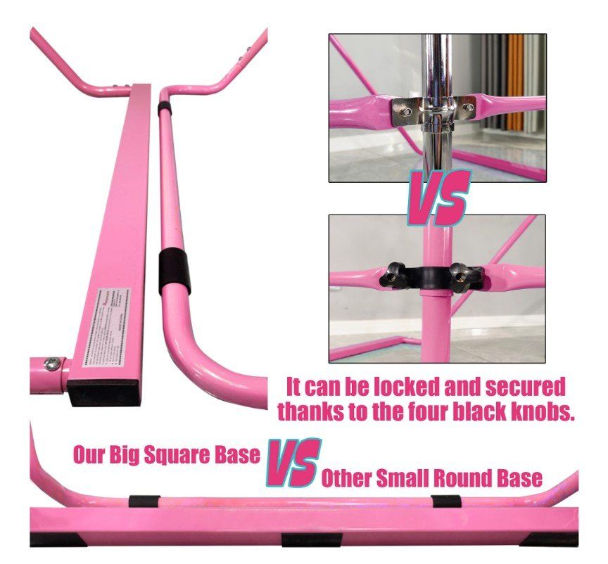 Stable Square Base VS Other Round Base:PreGymnastic folding bar comes with sturdier square base and big triangle structure design, which make it strong enough. The pads under the base keep it nicely in place.