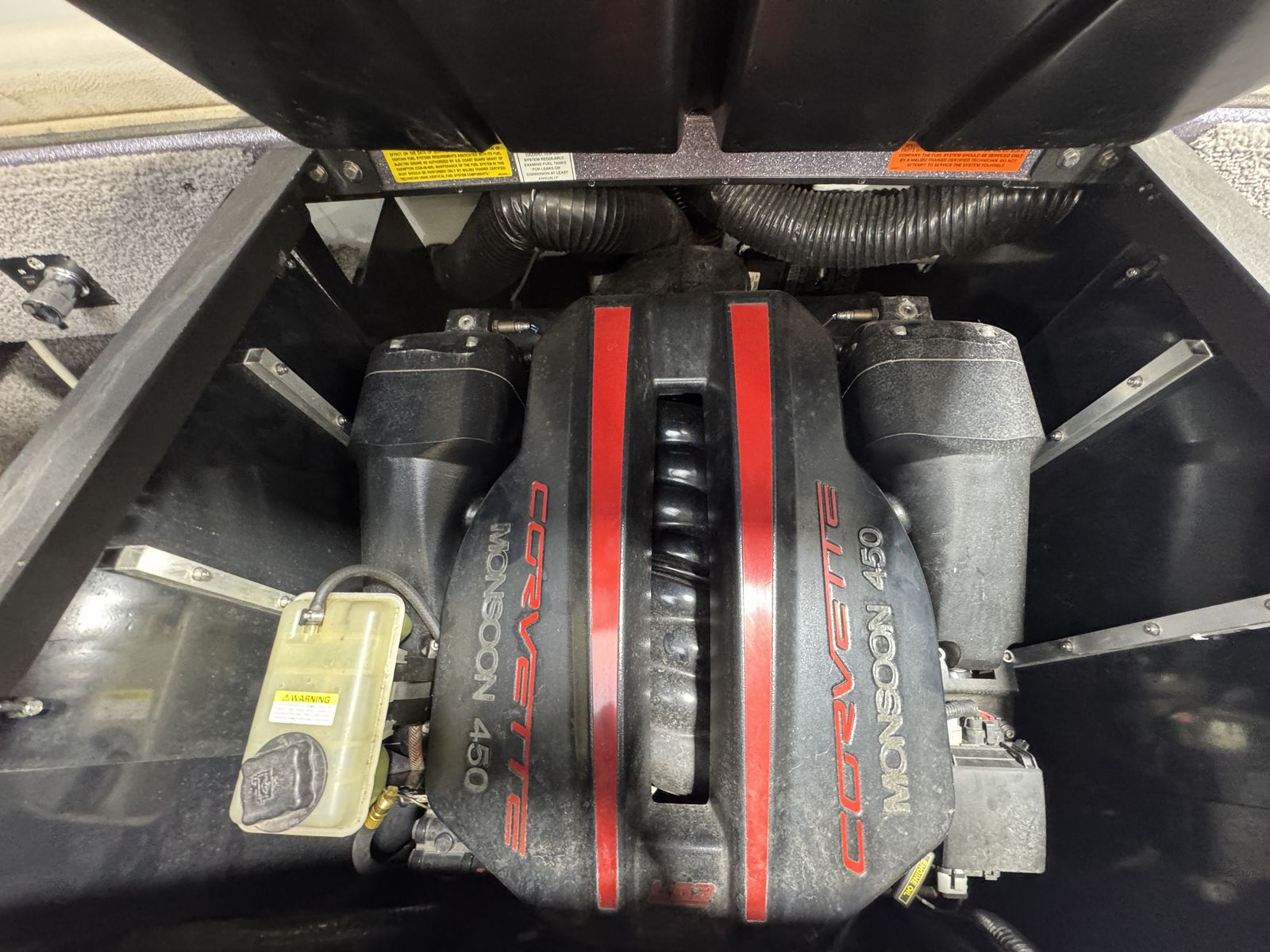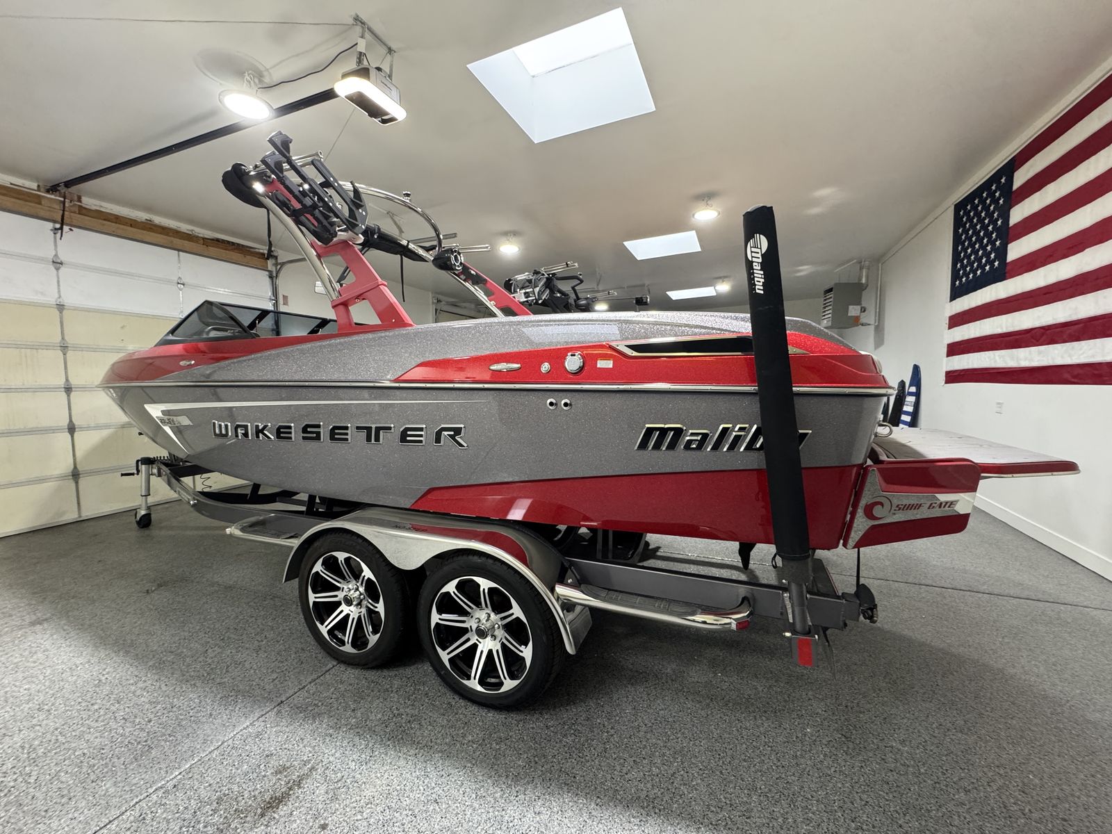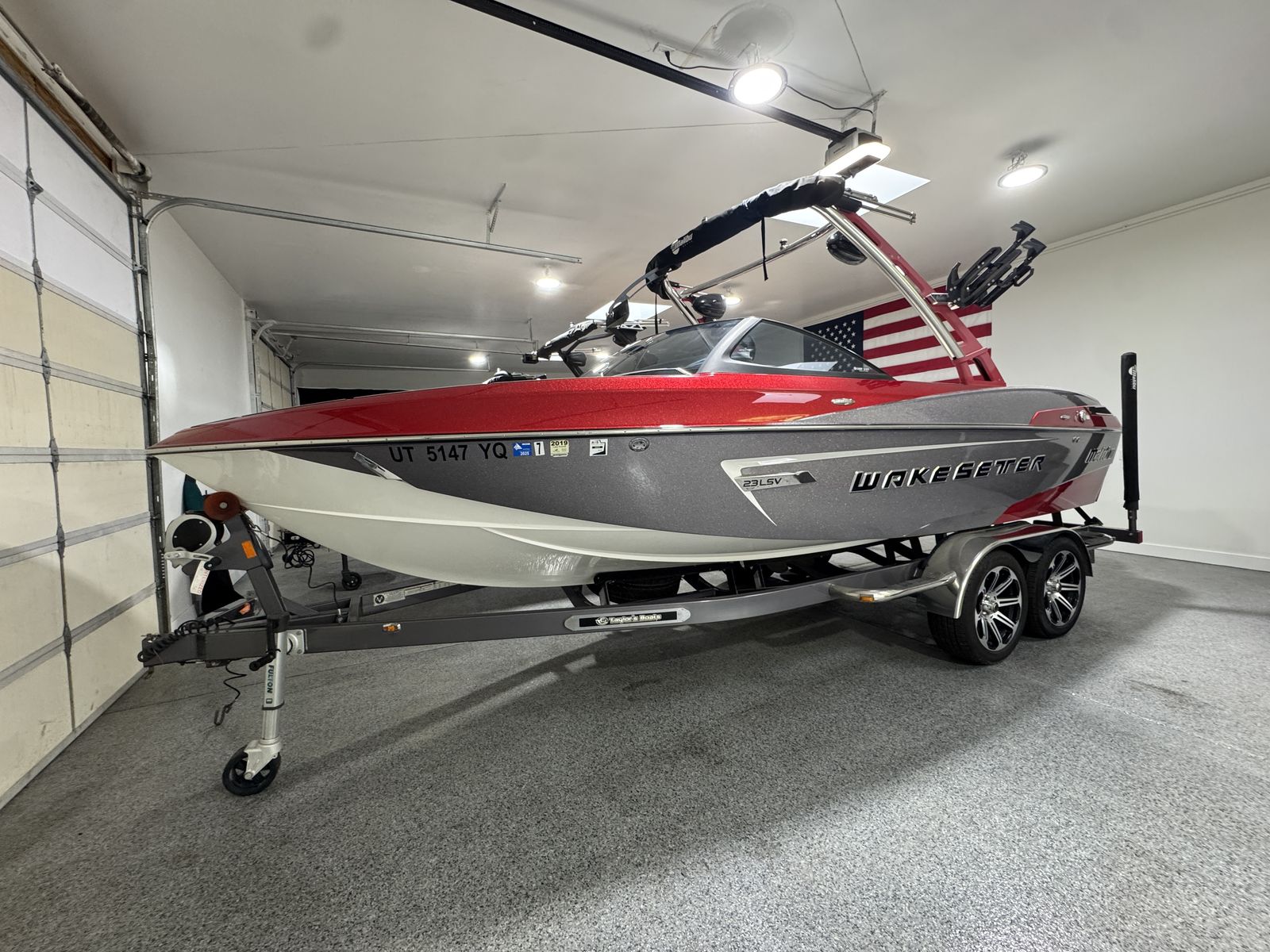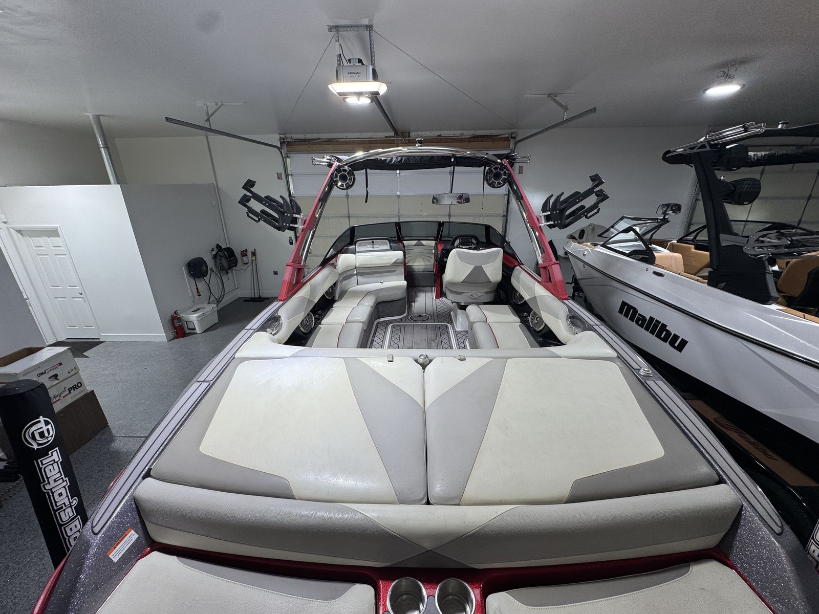 Finished in a sharp red and metallic gray color combo, this boat stands out and has been well cared for.
