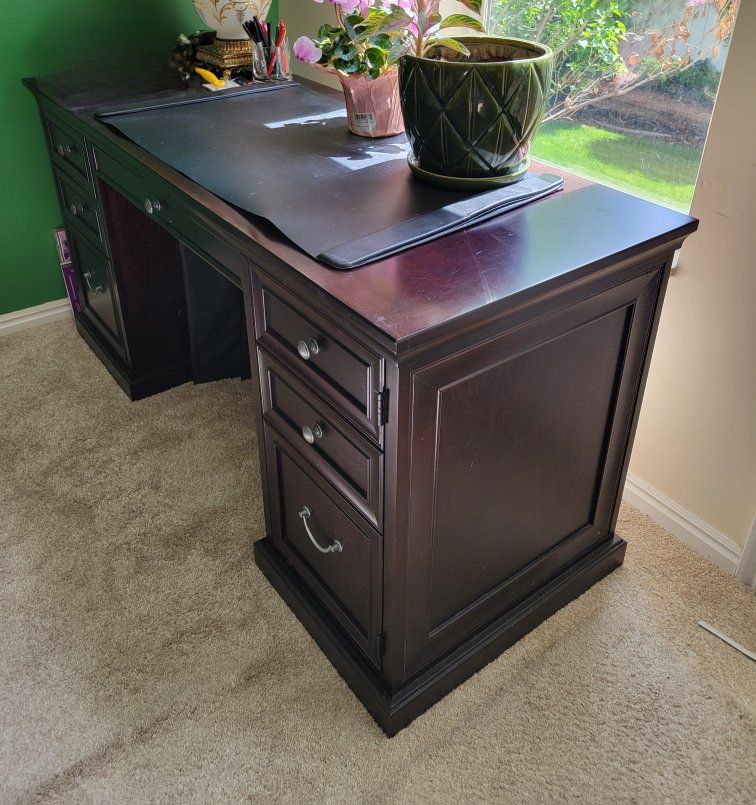 VenmoLadies size cherrywood desk. Great condition, except for sun fading on back panel. 61" wide, 30" tall. No chair.