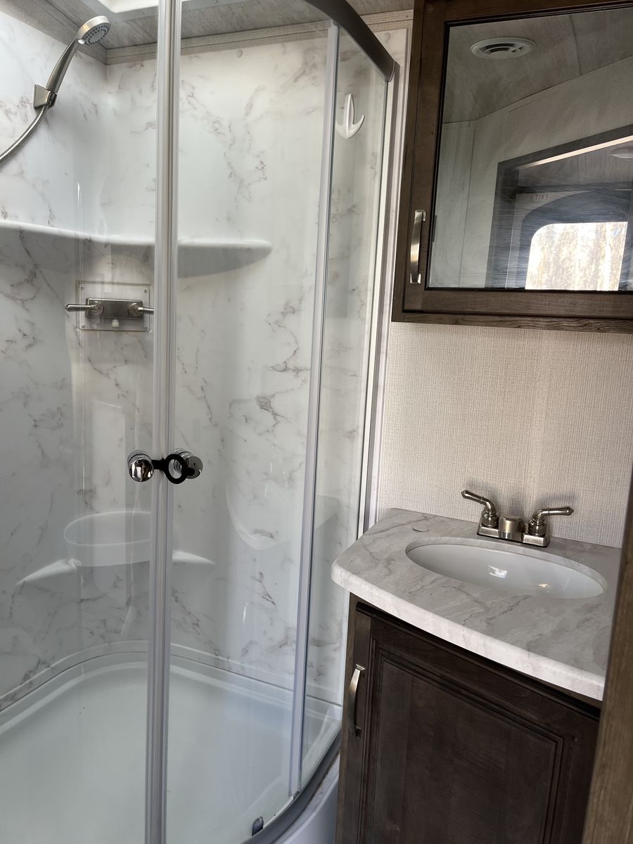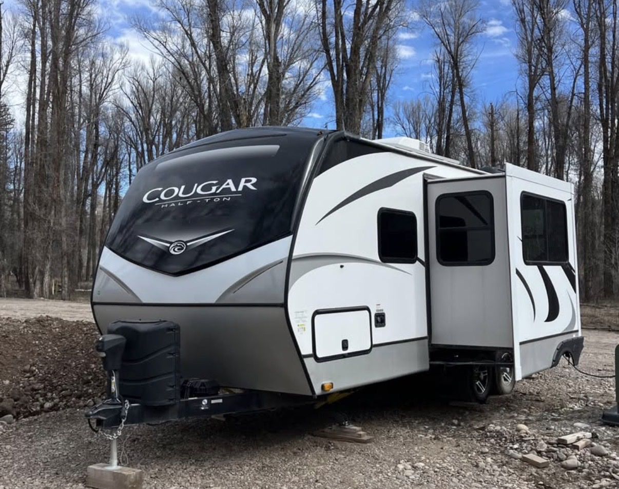 Venmo2021 Keystone Cougar Travel Trailer, Half Ton, Model 22RBS. Barely used and in excellent shape. Designed for cold weather with Climate Guard protection package that has heated and enclosed underbelly. Other features, not all are listed. •25’ •Power tongue jack, electric stabilizers •iN Command Generation 3 touchpad control center •Off the grid solar camping package •”Driftwood” interior (see picture) •Sleeps 4 •King bed •Power slide out •Power awning •U shaped booth dining •Many many more features
