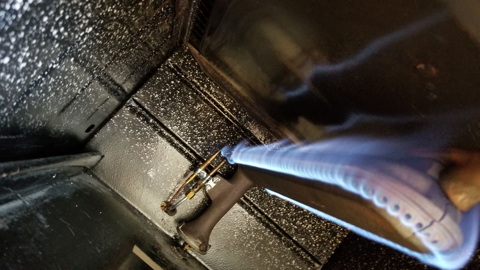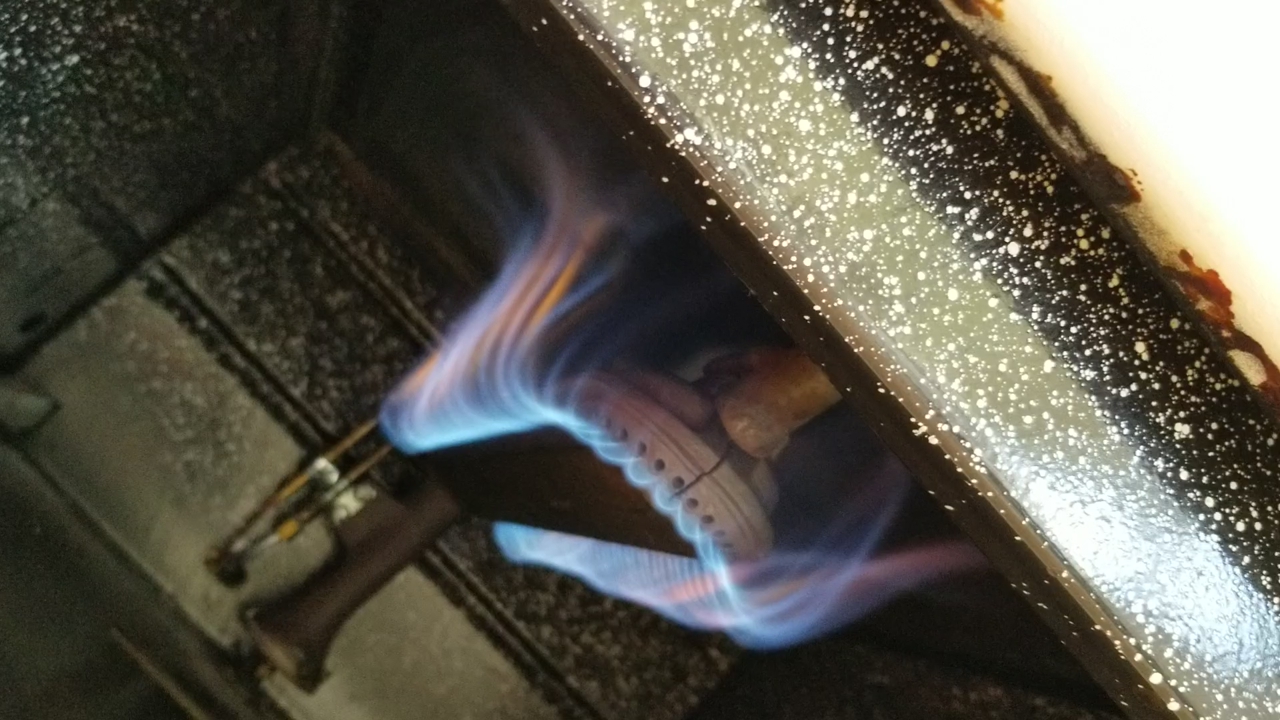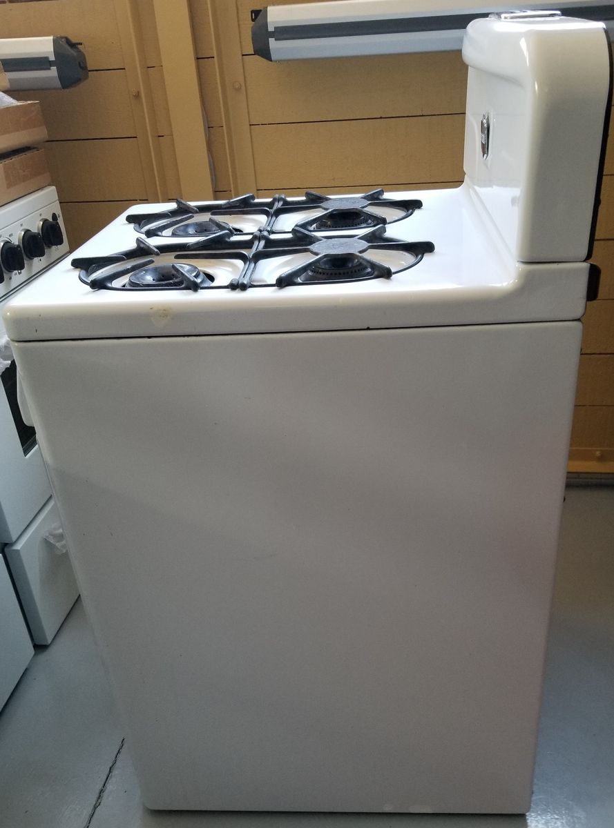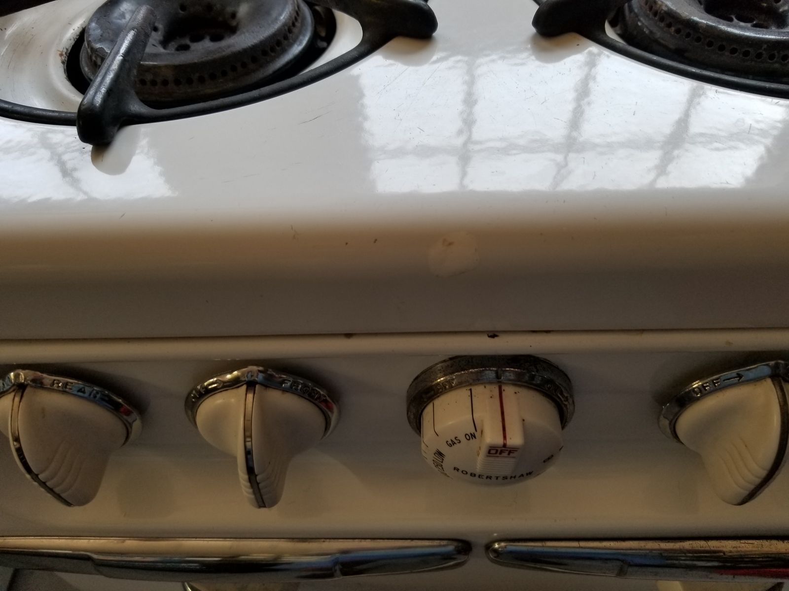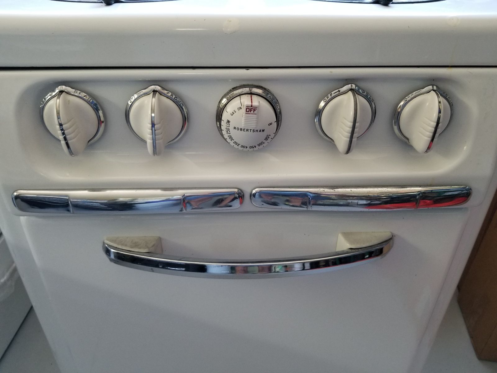 This is a fully functional unit — all burners, oven, and broiler are working. Pilot lights allow operation without electricity, which is a big advantage over modern stoves.
