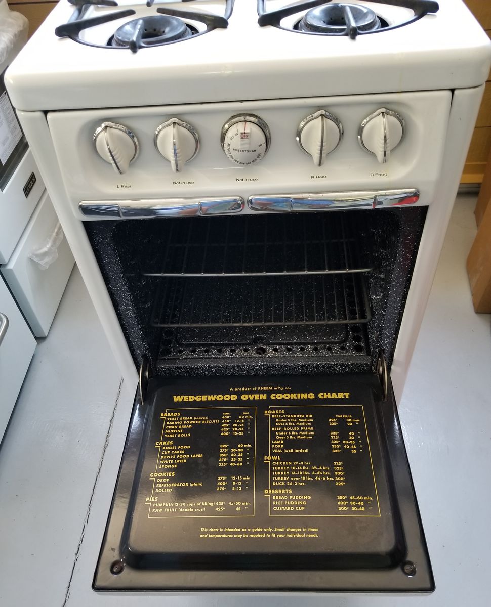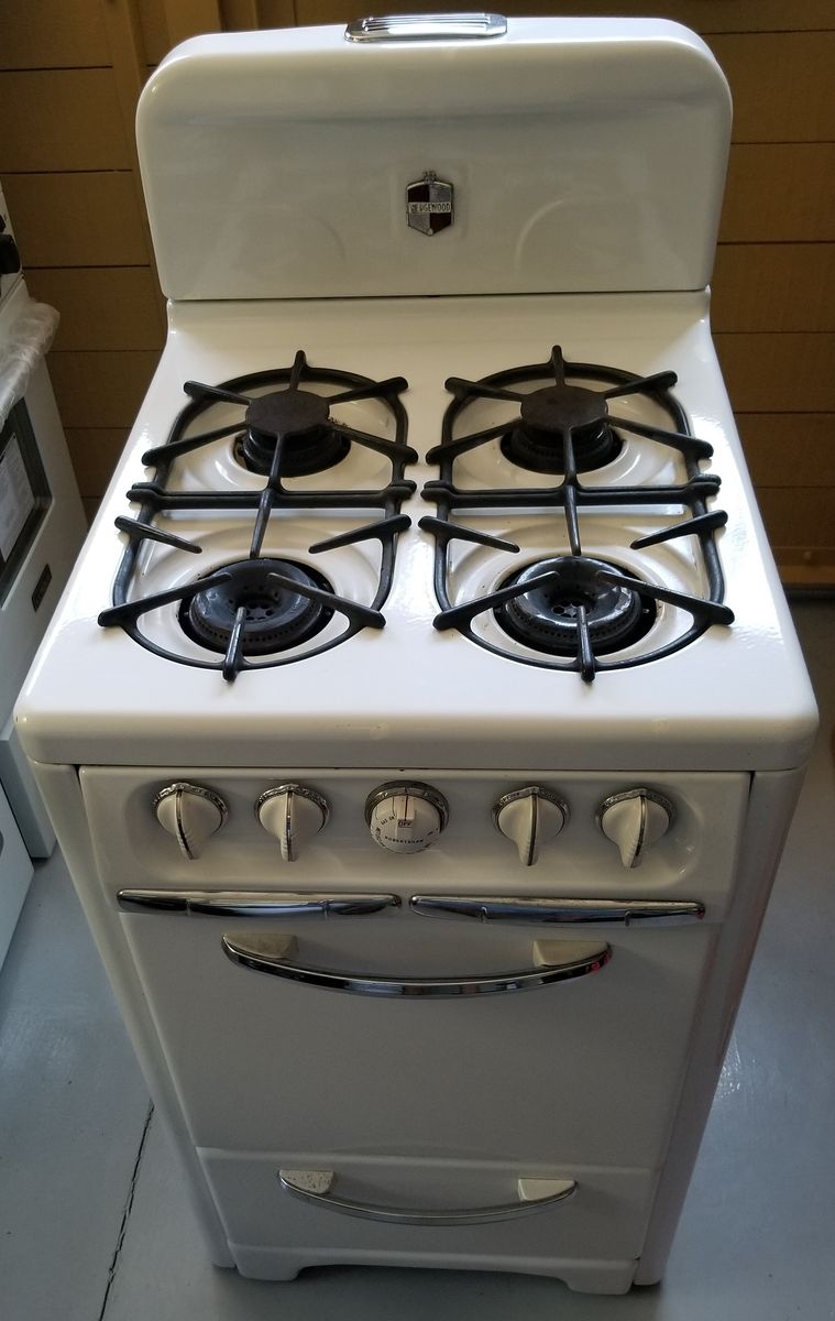 VenmoVintage 1950s Wedgewood gas range in hard-to-find 21.5” width. Great fit for smaller kitchens, cabins, rentals, or remodel projects where a full-size stove won’t fit.