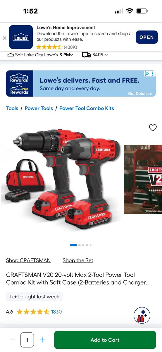 This is a really nice craftsman set in like new condition! If you need a good set you won’t find a better deal, look no further! A similar 2 piece set runs around 90.00 at Lowe’s now as shown in photos! Dont pay retail prices, call Dustin instead at 801-205-3404, I need it gone!