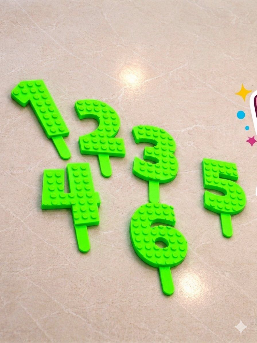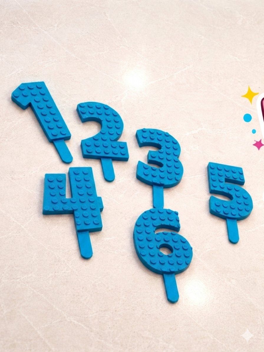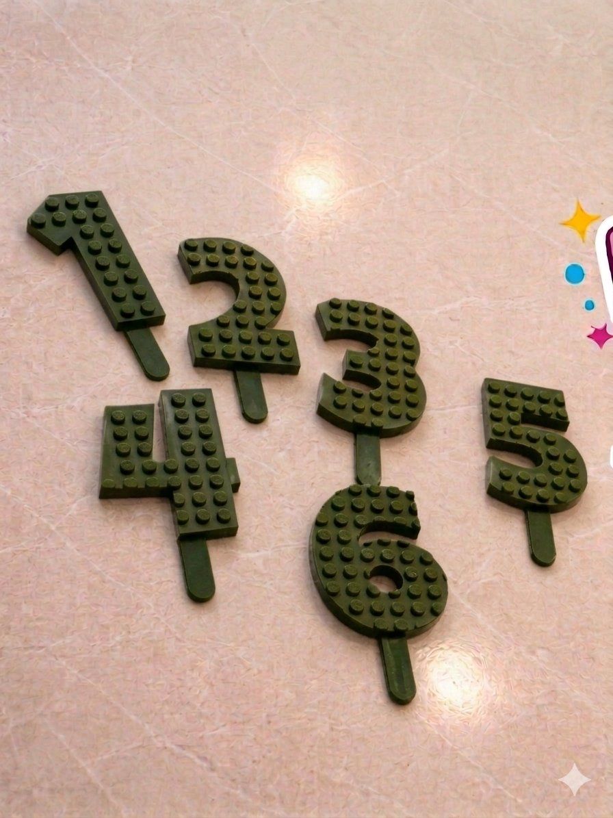 For sale is a set of Lego-style number cake toppers, perfect for adding a playful touch to any birthday celebration! These toppers are in excellent condition and ready to make someone's special day even brighter. They are ideal for Lego-themed parties or anyone who loves a fun and unique cake decoration.