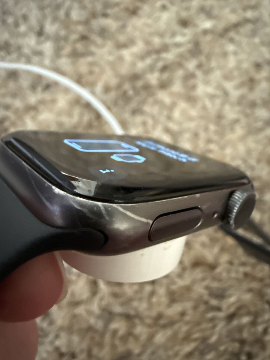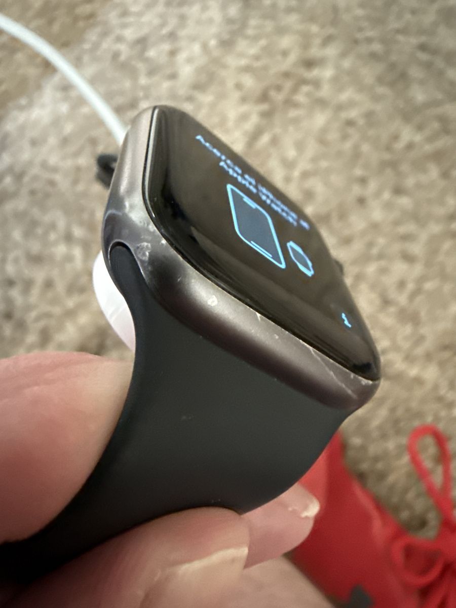 PayPalSeries 5, 44mm aluminum body. Comes with a watch lightning combo charger. You can see the scratches on the body, but the face is clean.