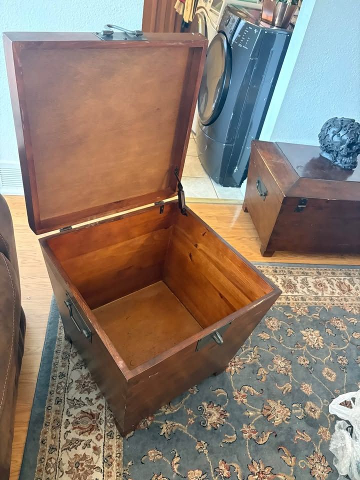 PayPalBeautiful solid wooden chest set of 2. Dimensions are as followed: Rectangular chest: 22” D 40” W 17.5” H Square chest: 22” D 22” W 22” H