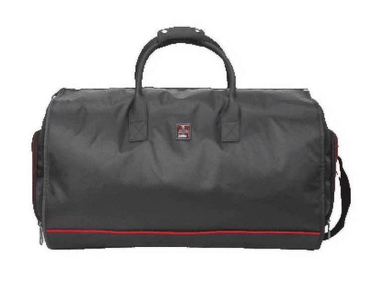 Swisstech 2 in 1 Travel Duffel Weekender - Black Perfect for travel, the gym, or everyday use Converts into a garment bag with shoe compartment Made from a durable and premium twill material Water resistant bottom Two toned colored zippers All metal accessories Top handles for easy transport and lifting Multi-use pockets for optimal organization Unisex - adult Duffel dimensions: 12"(L) x 22"(W) x 12"(H