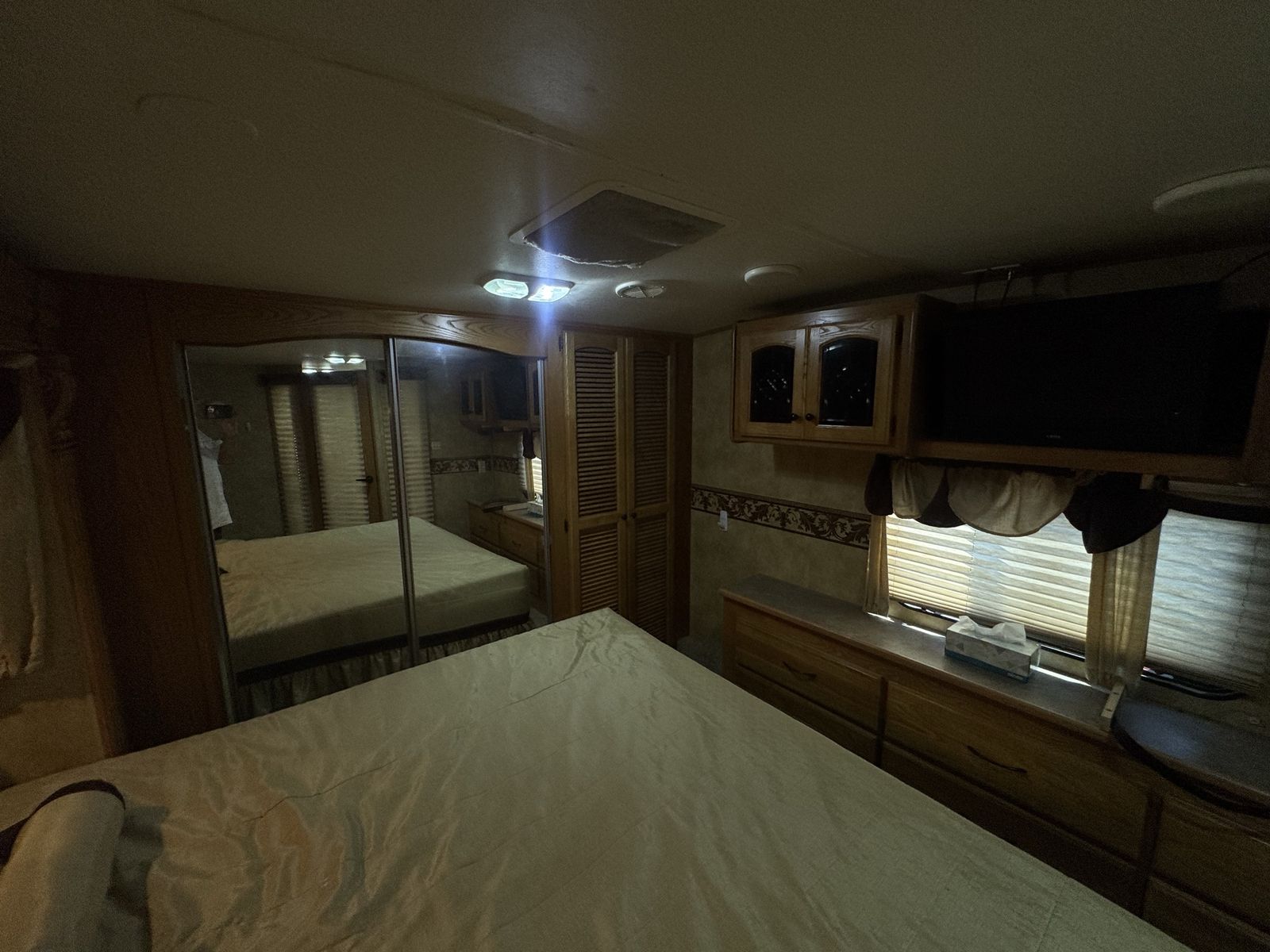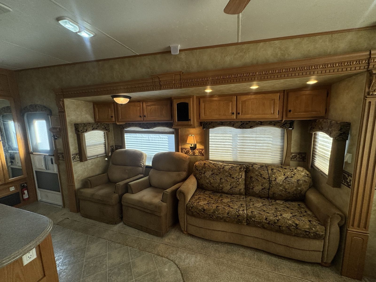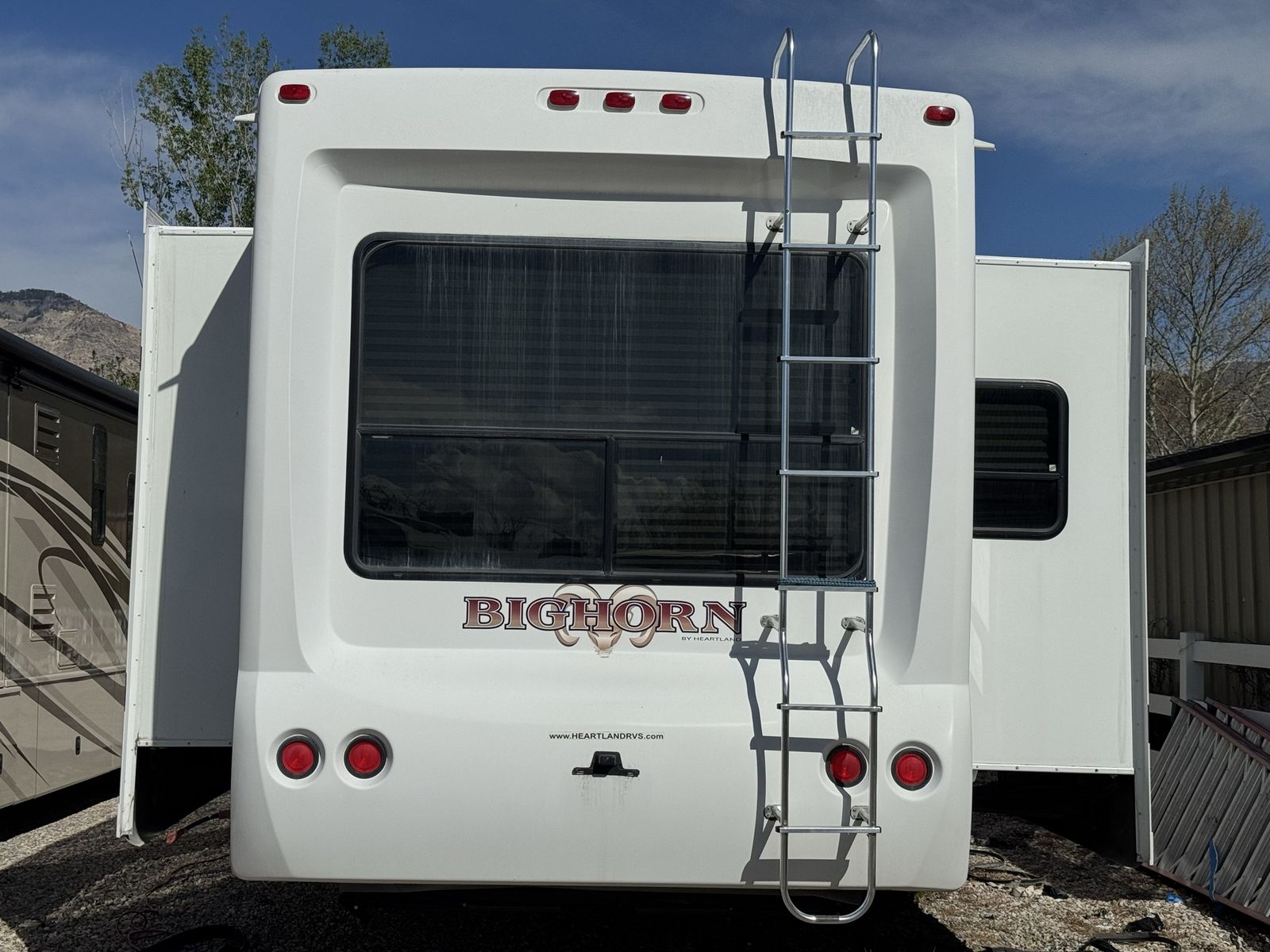This 2008 Heartland Bighorn 3580RL is a luxury, triple-slideout fifth wheel. This trailer is in crazy good shape! Known for its rear living (RL) layout, this model features upgraded woodwork with Corian countertops It comes with a 12-gallon water heater, 3 way fridge, gas and electric water heaters, upgraded furnace, 75 gallon fresh water tank, large holding tanks (90g gray/45g black), and a heated/enclosed underbelly, making it suitable for extended stay or full-time RVing. It has washer dryer hookups, walk-in closet space, central vacuum system, a huge garage under the bedroom. Had a king size bed with a memory foam mattress! This trailer has a “better than new” roof with all new upgraded roof vents. A new solar system was just installed. The slide seals have just been replaced.