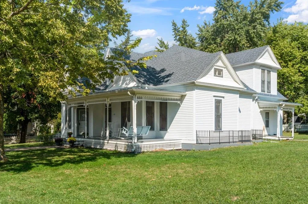 Charming 8-bedroom Victorian on a corner lot in a peaceful rural town—just 40 minutes from St. Joe! Forget the hustle and bustle and enjoy small-town living at its finest. Sitting on nearly half an acre, the fenced yard is as cute as a button, perfect for gardening, pets, or play. The 2-car garage makes a great spot for vehicles or a workshop, plus there's a handy shed for extra storage. Built in 1915, this home showcases timeless craftsmanship and character throughout. The main level offers a large kitchen and a formal dining room, while the lower level includes a second kitchen—ideal for hosting guests or multi-generational living. With bedrooms and bathrooms on every level, there's plenty of space for everyone. Don't miss your chance to own this piece of history with room to spread out—call today!