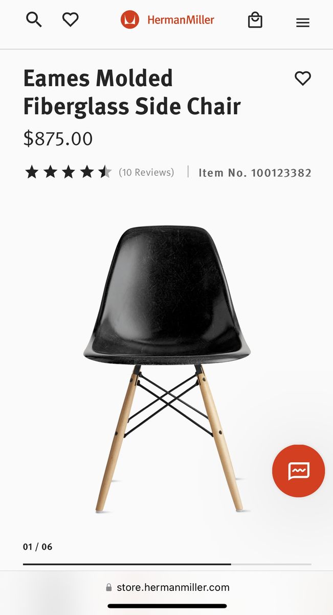 We have six Eames Molded Fiberglass Side Chairs available for purchase. They retail for $875+. The fiberglass style is an MCM classic design and is currently not in production due to supplier issues.