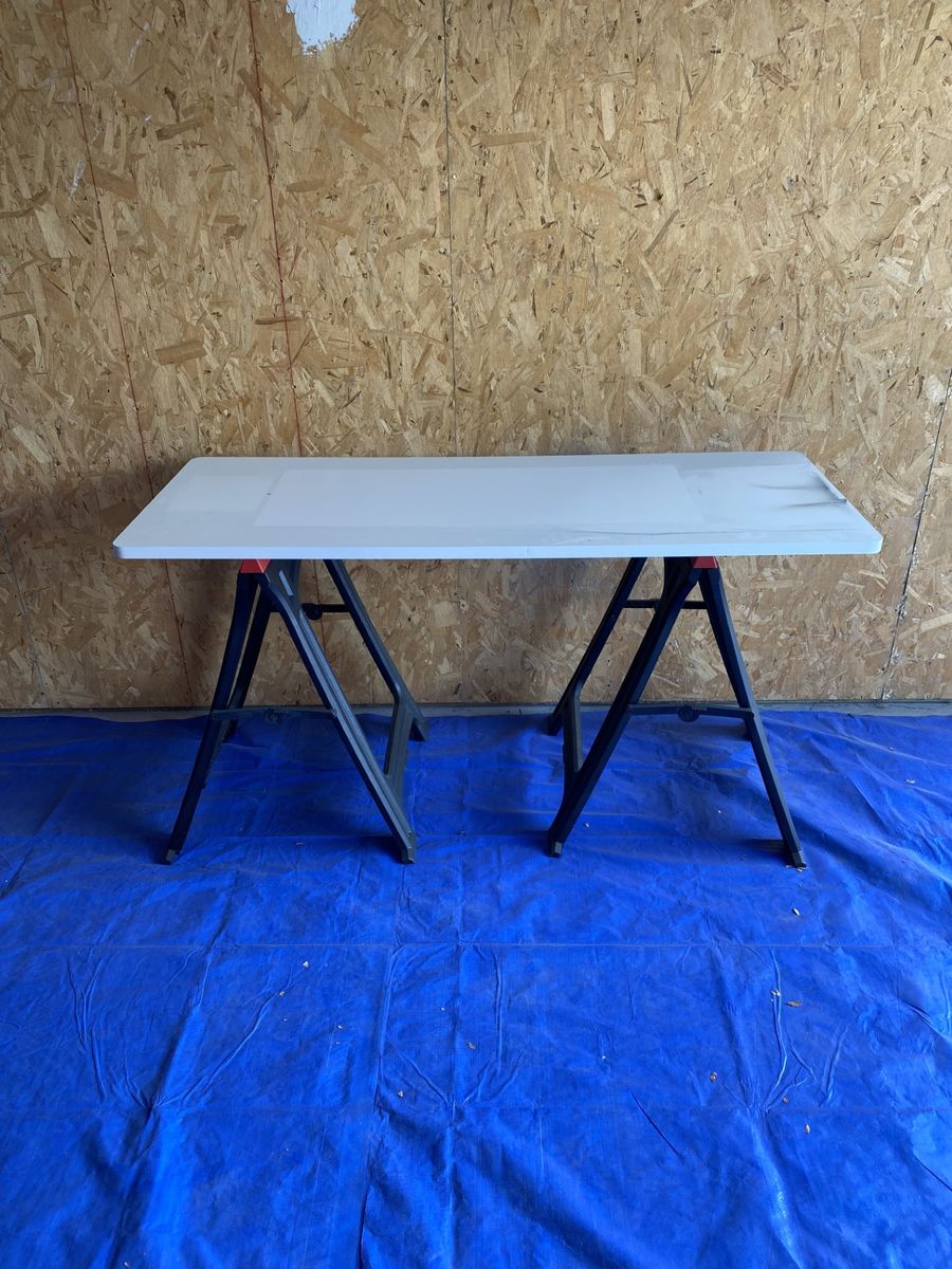 VenmoExcellent condition. It's only dusty from not using it. 30" x 60" laminated desk top and two plastic sawhorses. Will not seperate - must sell together. I cannot deliver, but I can help you load it in your vehicle. $60 firm - No trades.