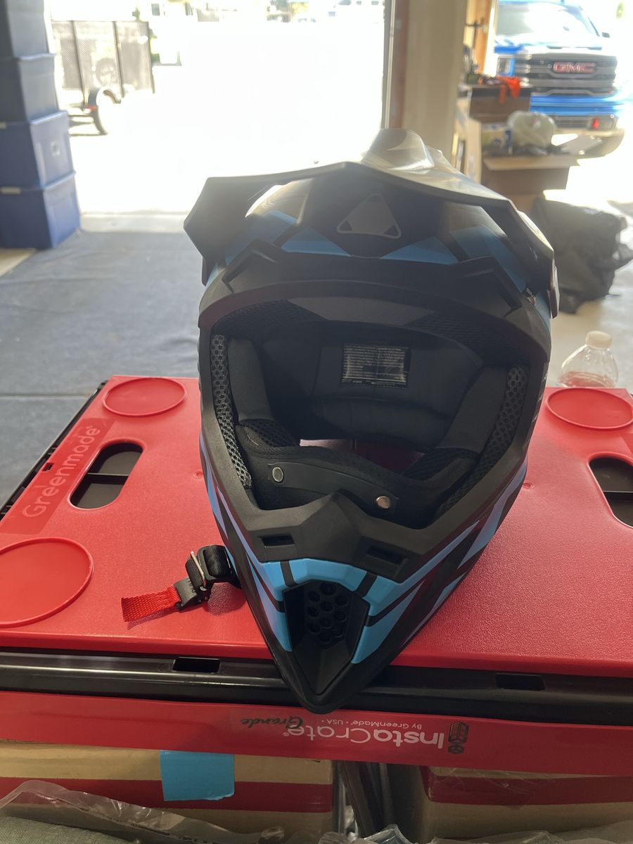 Size Small. My son grew out of it. Has 3 days of easy snowmobile trail riding.