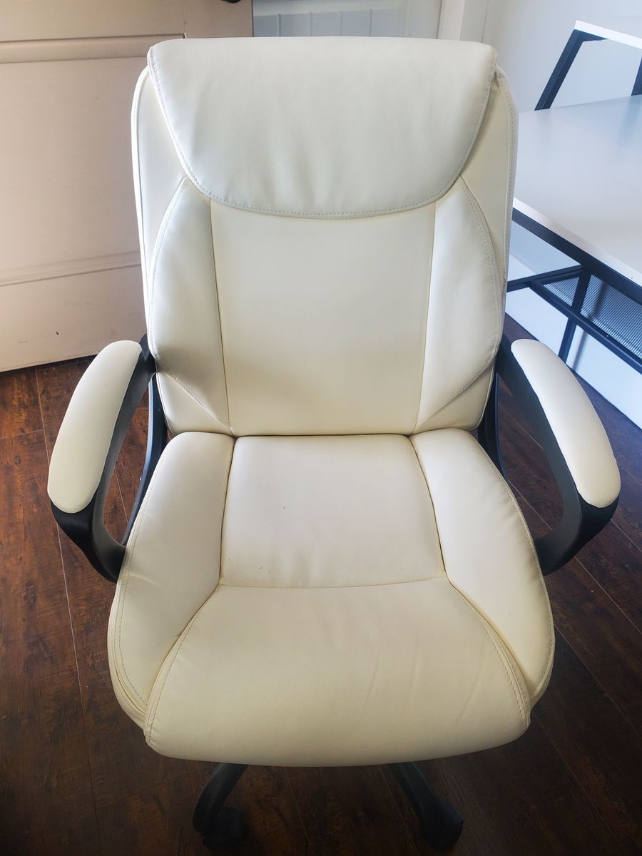 Chair is ivory faux leather with a few minor scratches.