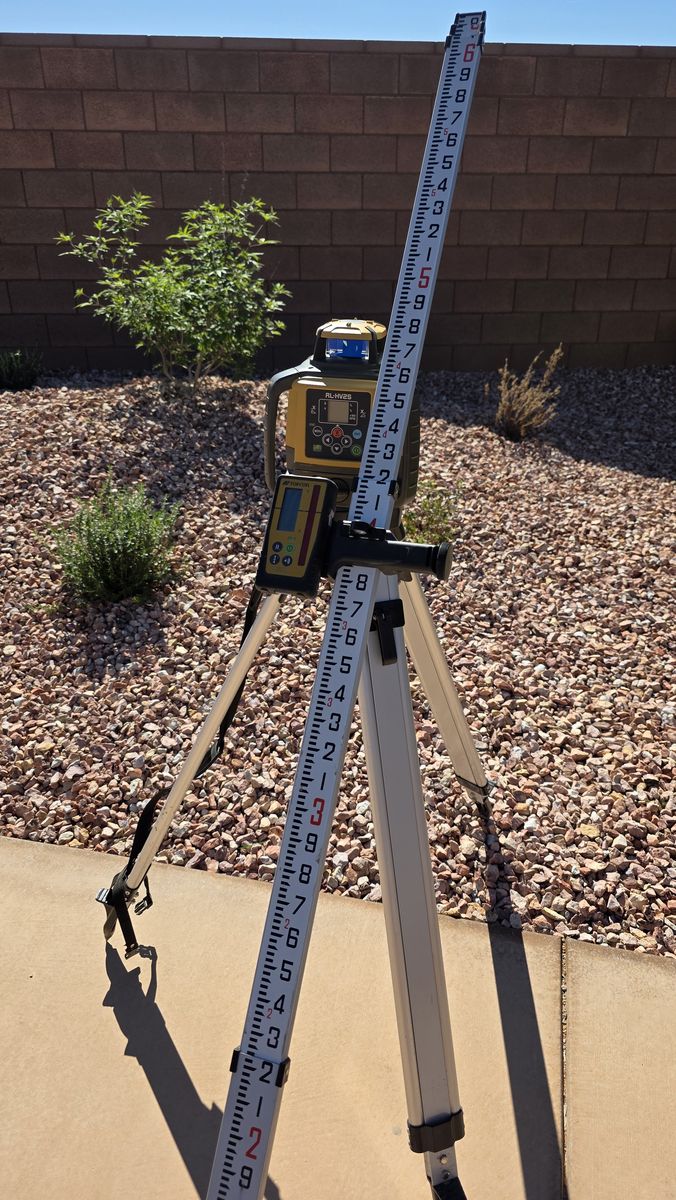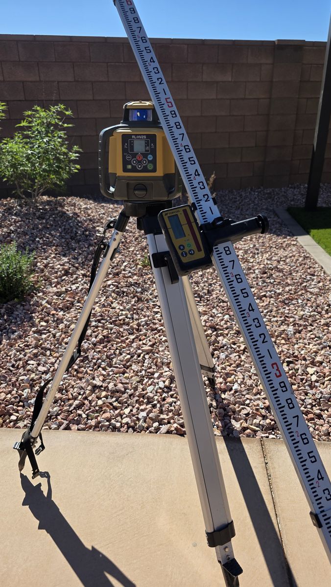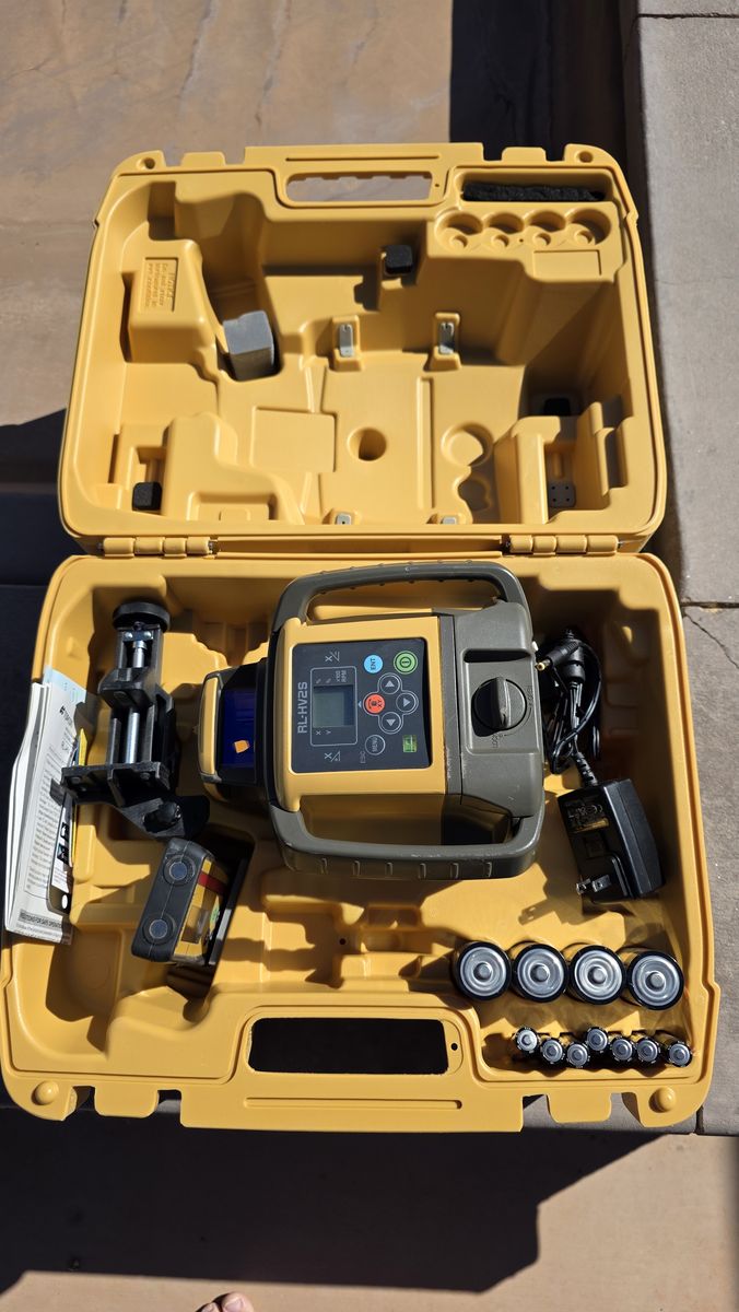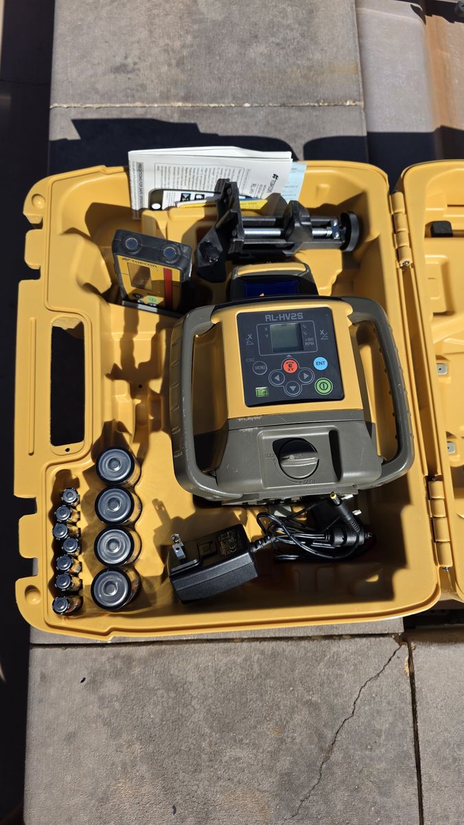VenmoLike new TOPCON RL-HV2S Dual Grade Laser with LS-100D Receiver, all aluminum tripod, and dual-sided aluminum grade rod. Horizontal, vertical, single, and dual slope capability. +/- 5% slope range, electronic self-leveling.