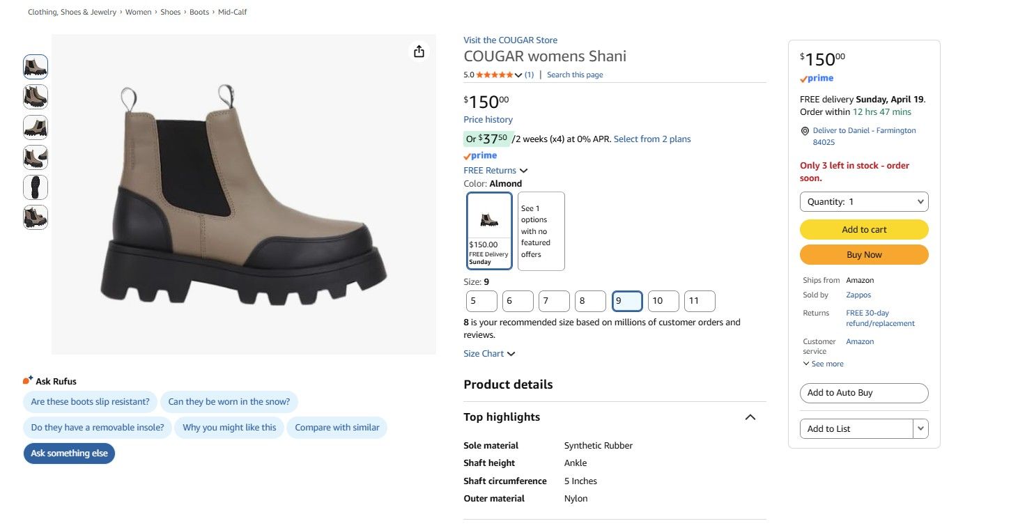 VenmoBRAND NEW Waterproof Cougar Womens boots, Shani Almond Color, Size 9