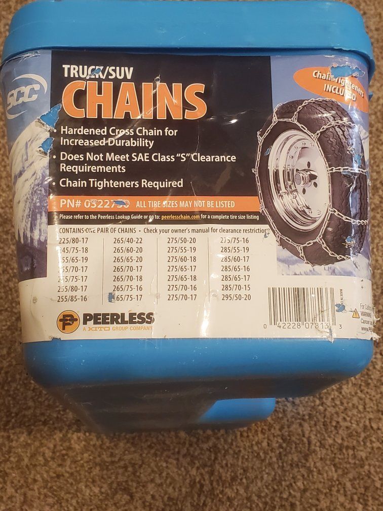I bought the snow chains from Walmart for my truck. I used them once while in the west desert and quickly realized my truck wasn't made with enough tire clearance. They've been sitting in my garage ever since. They are not the snow cable style chain and paid $120 for them.