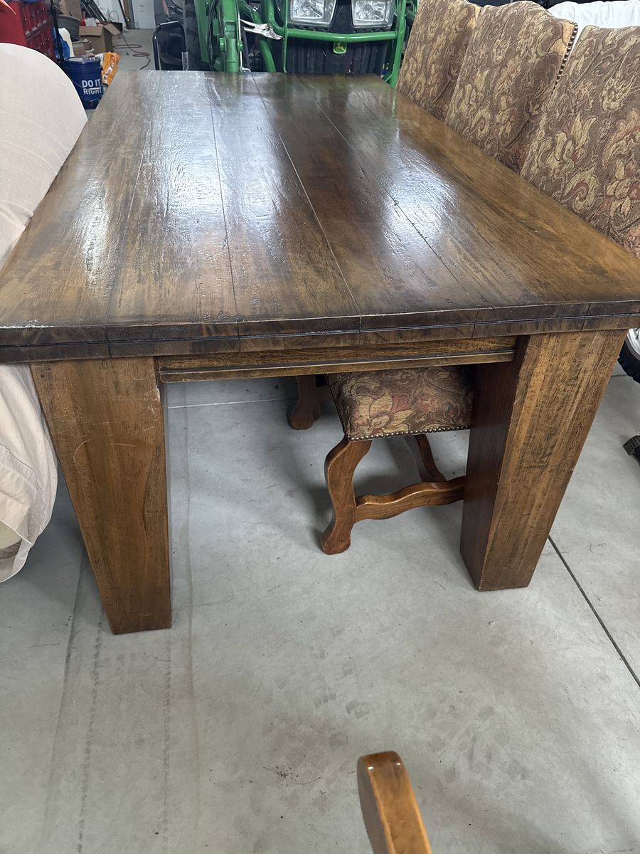 VenmoThis table comes with 6 cloth chairs and 2 leather chairs. It is a beautiful set. We have absolutely loved it. Only getting rid of it due to remodeling the house. Originally paid $10,000