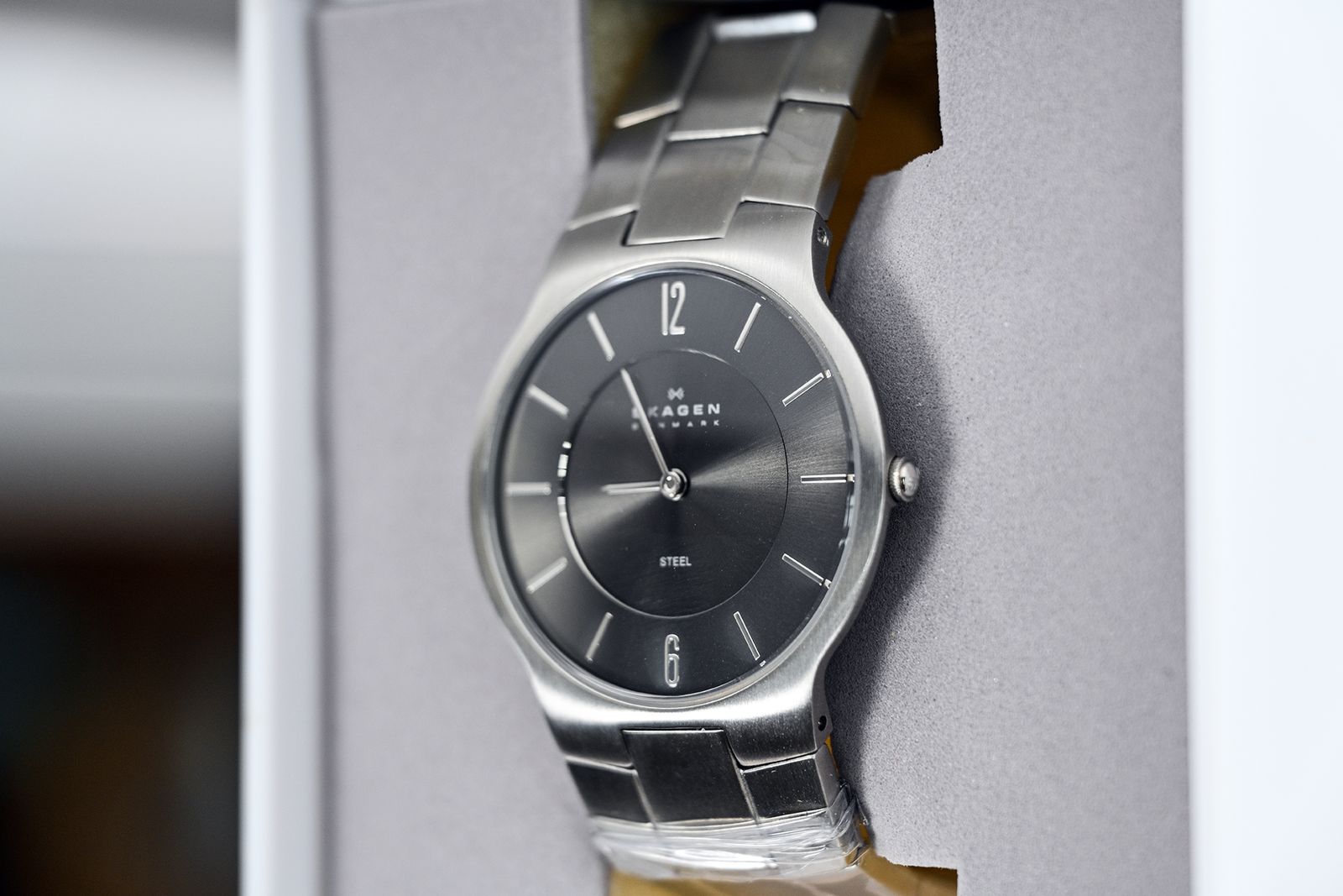 VenmoSKAGEN is a well known Danish designer of jewerly and luxury items. This men's stainless steel watch is the classic example. It is brand new, never opened, never started, it even has the original protective wraper on the strap. It is very thin and 1.25 inches in diameter. Since it has never activated, I am not sure of the battery condition. Shipping: $8.00