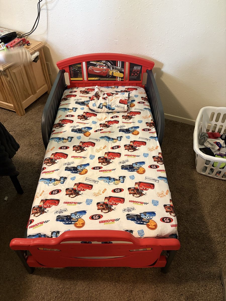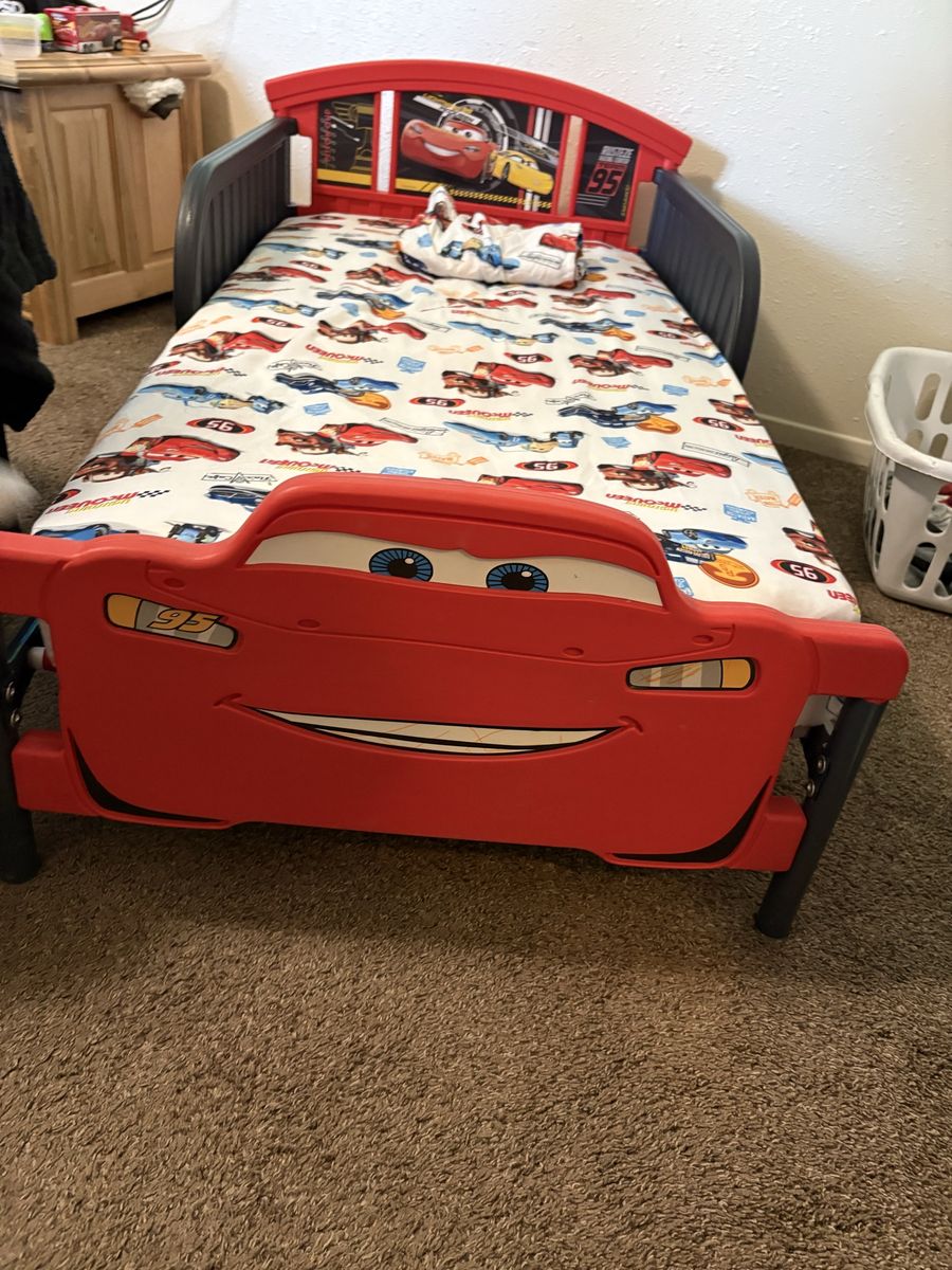 CashAppLightning McQueen bed for toddlers with crib mattress, and lightning McQueen sheets. Our toddler is now sleeping in his big bed and we no longer have a use for this one. 75.00 obo