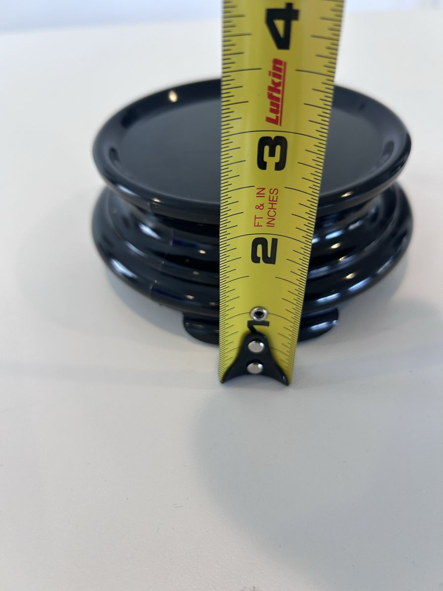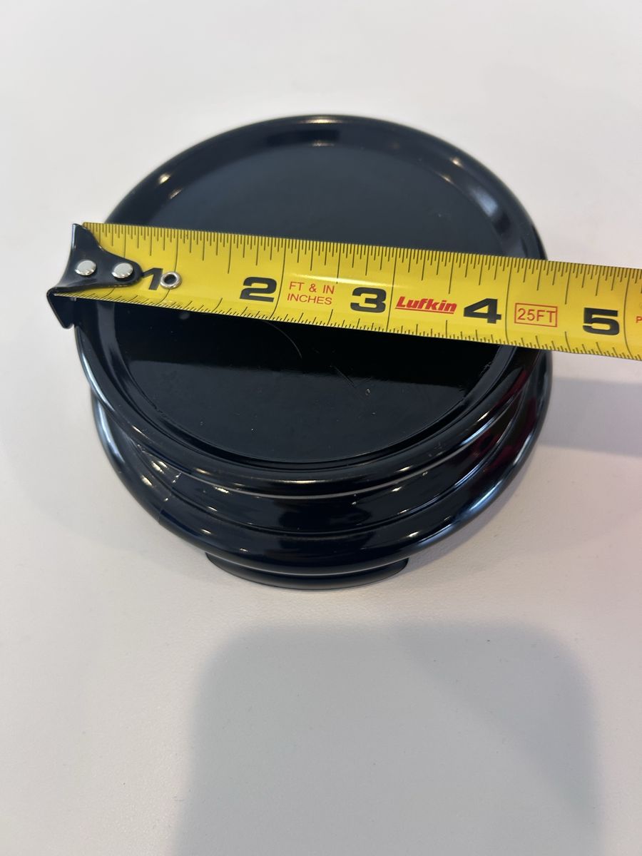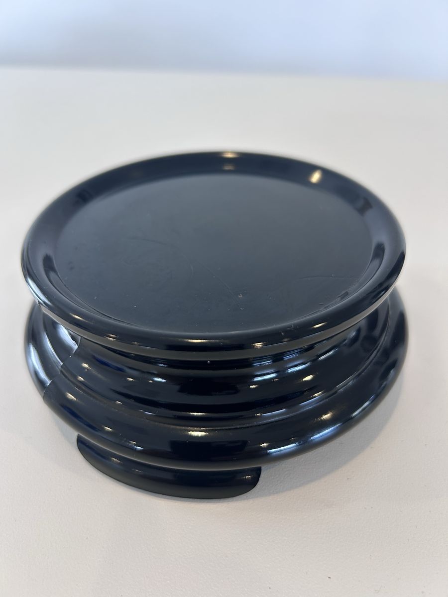 ZelleThe product is a medium-sized black porcelain pedestal stand for figures. It features a vintage/retro style with a smooth finish, standing at 2 inches tall and 4.5 inches wide. This heavy-duty stand is free-standing and weighs 14.24 oz, making it sturdy and secure for displaying your figures. Its unique design and material make it a decorative and functional addition to any home or collection.