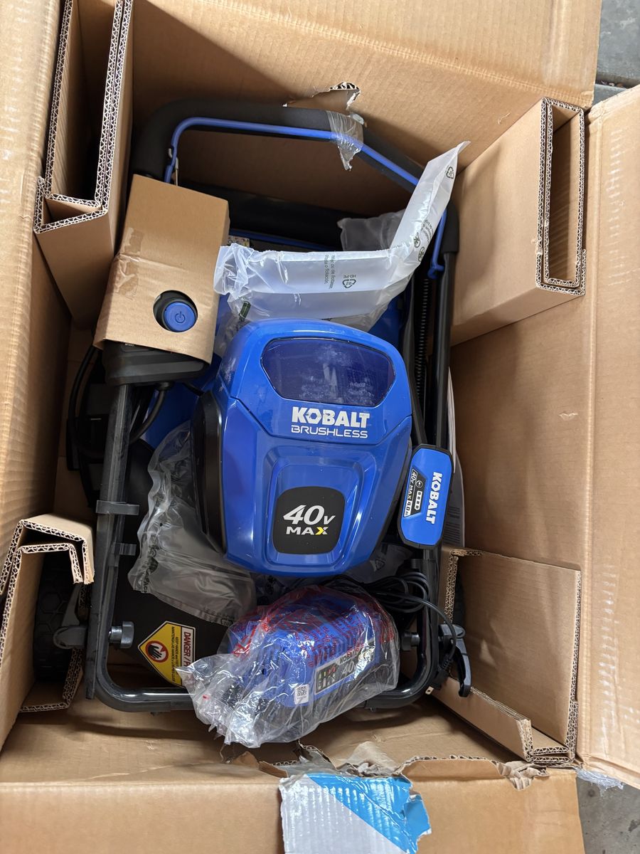 Nice brand new Kobalt 40 volt push lawnmower in open box! This is a great lawnmower that’s never been taken out of the box! Considerably less expensive than the store! This exact mower is currently at Lowe’s for 349.99 plus tax as shown in photos!. Don’t pay retail prices, call Dustin instead at 801-205-3404, I need it gone!