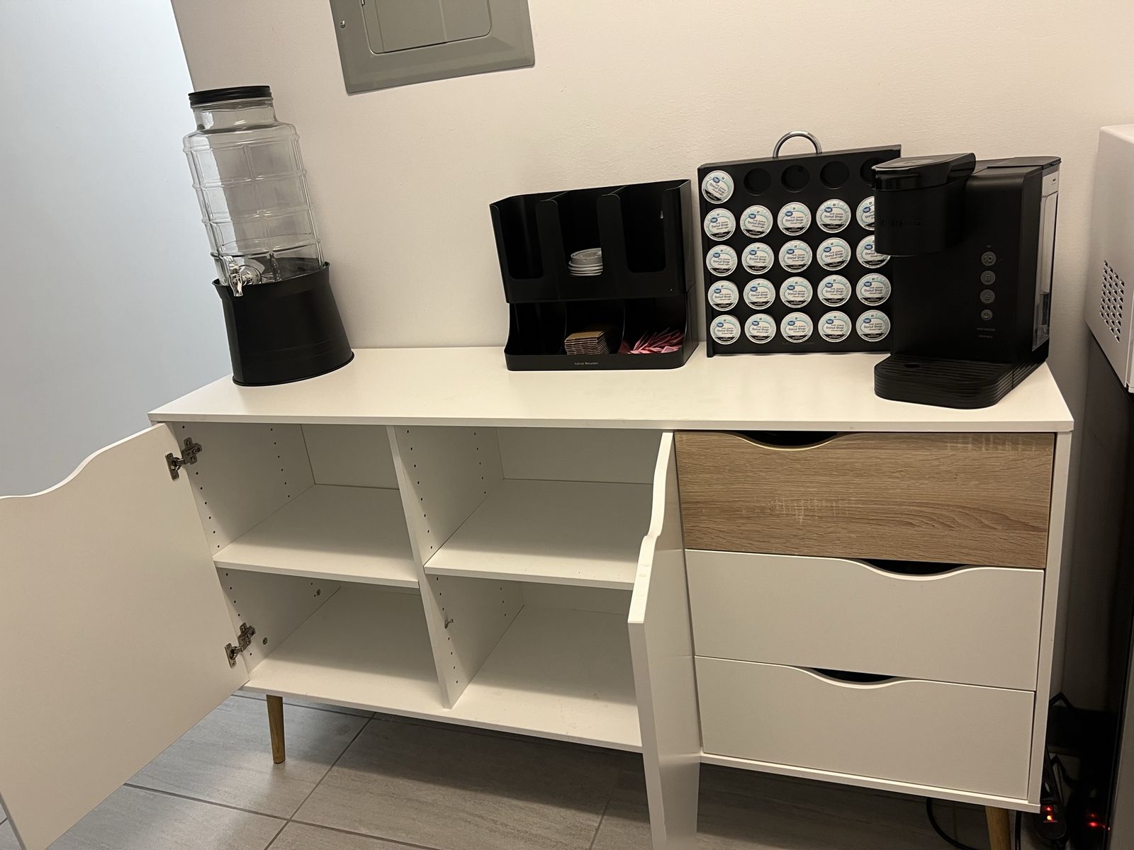 Cute white hutch could be used as a dresser or a coffee bar