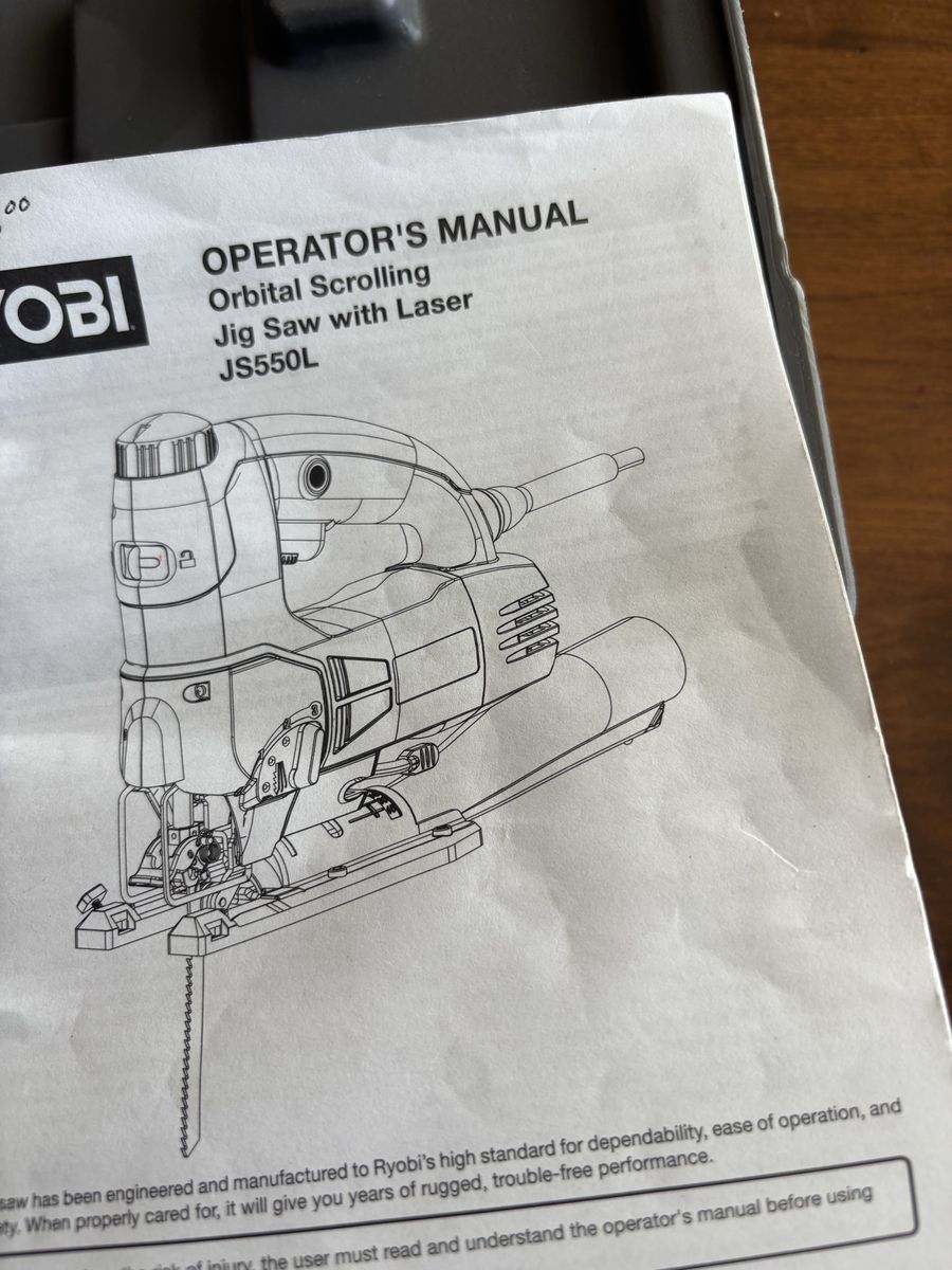 Almost new Ryobi Jig Saw has built laser lights . $60.00