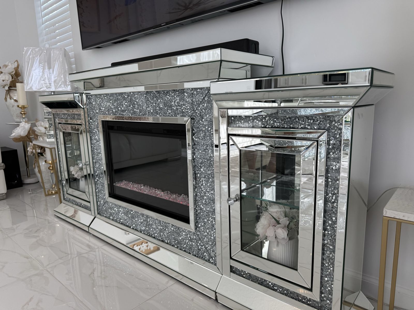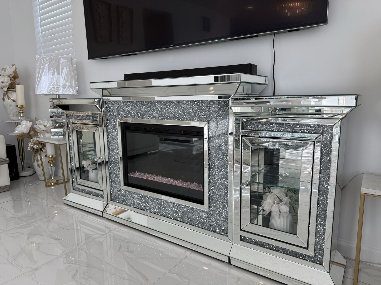 ApplePayNoralie Fireplace W/Led ACO0522 Mirrored & Faux Diamonds | Acme