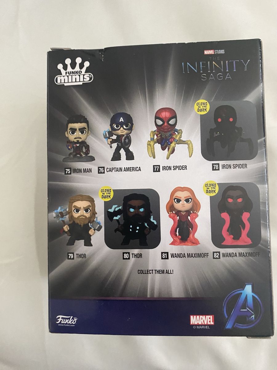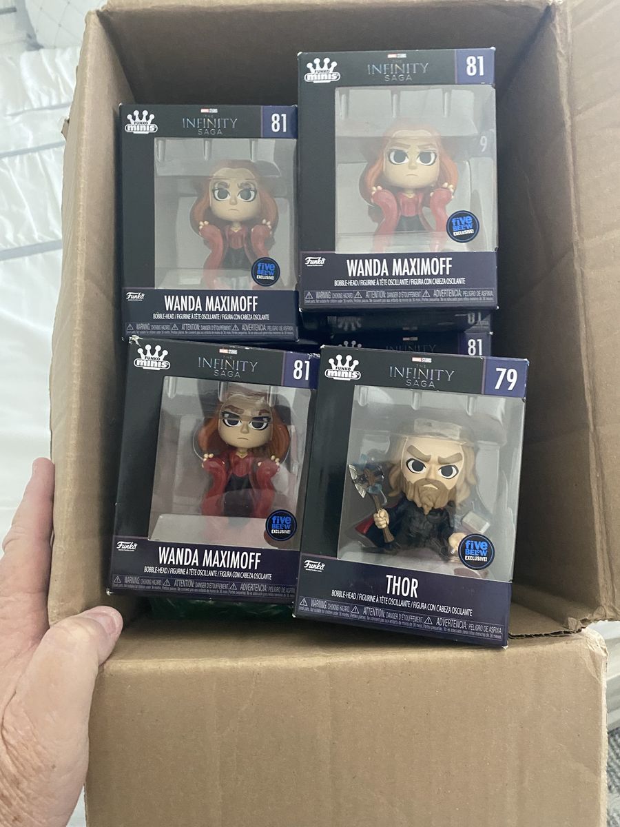 VenmoI purchased these at an estate sale. There are Funko Minis 4 - #81 Wanda Maximoff 8- #79 Thor