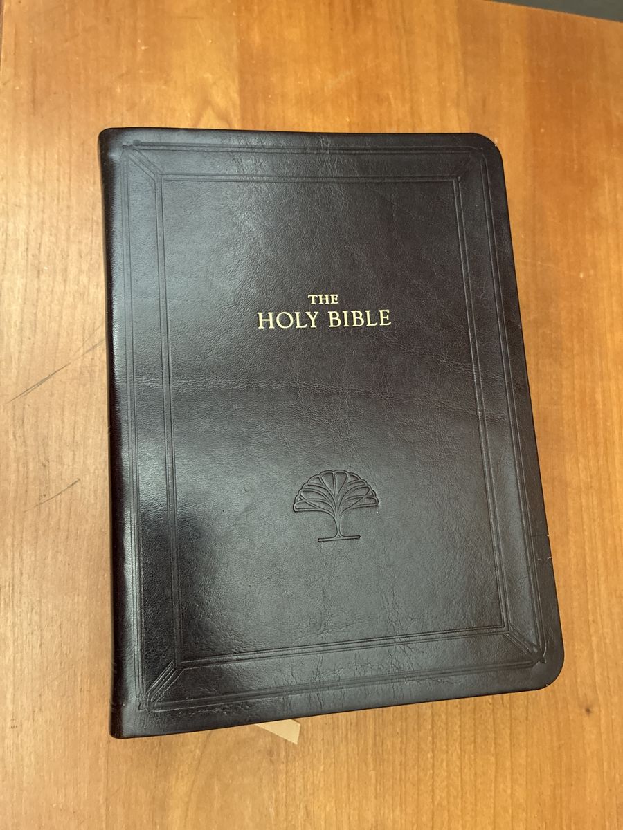 Got this as a Christmas gift from the Church when I worked at BYU. Leather. It’s in like-new condition. I never read it (a Bible, a Bible, I already had a Bible )