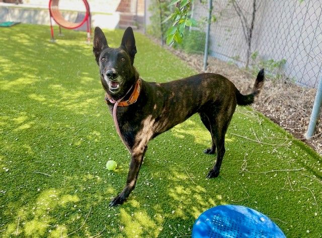I'm a stunning 6-year-old Dutch Shepherd with a big heart, a brilliant mind, and just the right amount of flair! I'm an energetic girl who loves to stay active, whether that's playtime with my favorite toys, showing off my smarts, or making new dog friends along the way. I already know some of the basics, and I'm always eager to keep impressing you! But, don't let my athletic side fool you! When the fun winds down, I transform into a total cuddlebug, happiest when I'm close, soaking up all the love and pets you're willing to give. If you're looking for a loyal, affectionate companion who can keep up with your adventures and then melt right into your arms, I'm your girl.