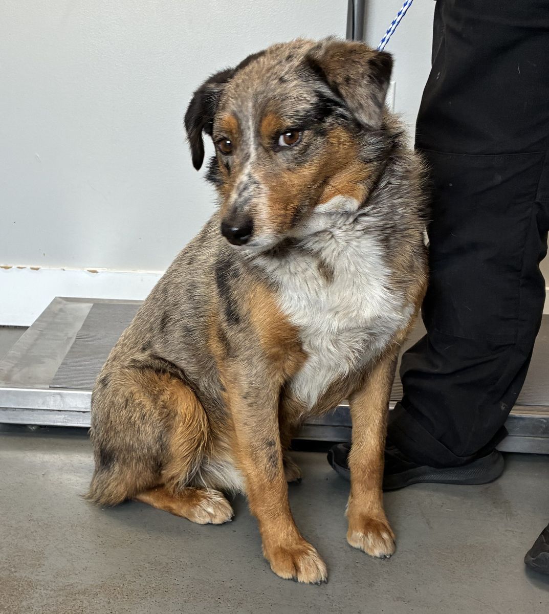 Hi, I'm Tarmac, a 3-year-old Australian Shepherd with a soft heart and a thoughtful approach to life-more slow stroll than fast takeoff, at least until I feel ready to really taxi into my groove. New places and big changes can feel a little overwhelming for me at first, so I like to take my time getting comfortable and figuring things out. Once I know I'm safe, I start to lean into connection and really appreciate gentle attention-I'm the kind of guy who bonds deeply and values those quiet, reassuring moments. I may not be the type to hit the ground running right away, but with patience, kindness, and a steady routine, I'll start to come out of my shell and show you just how special I am. Think of me as your co-pilot in life: I might need a little time on the runway, but with you by my side, I'll be ready to soar.