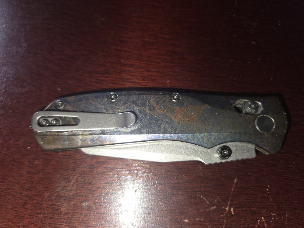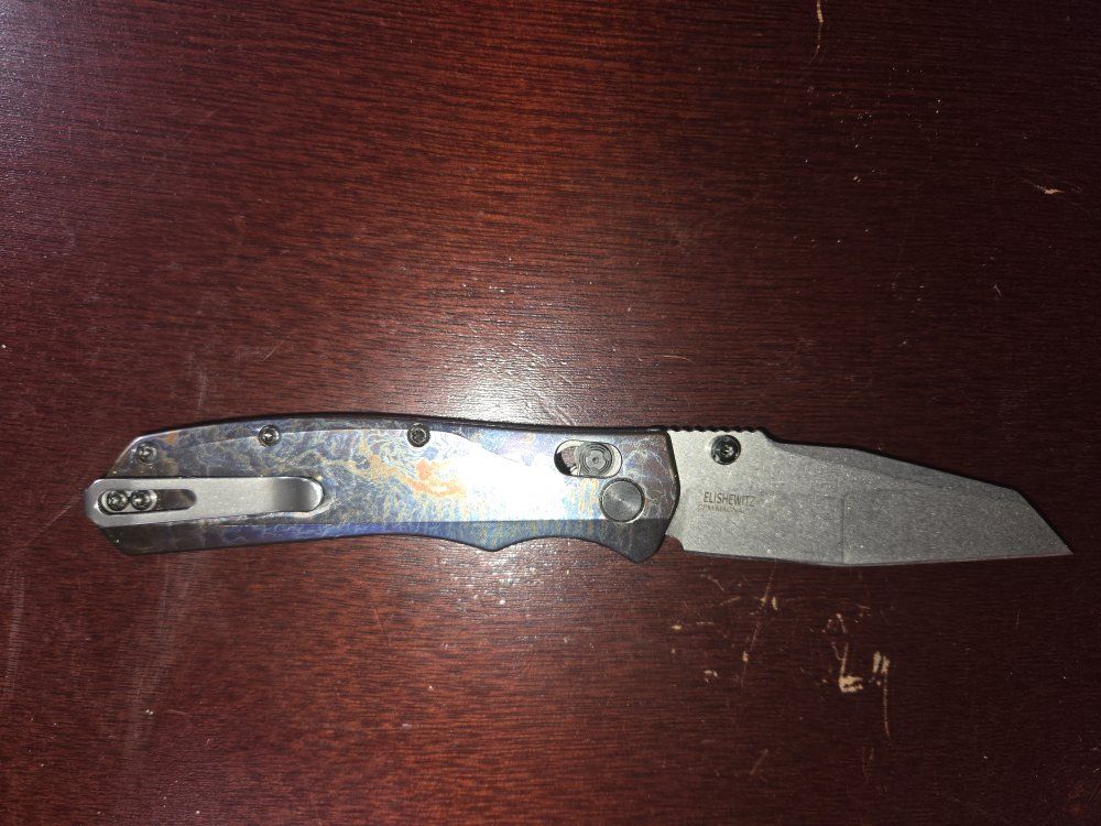 Houge deka magnacut with custom titanium scales that are lightning ano look new never used just custom scales and does have original scales as well in box crossbar locking system