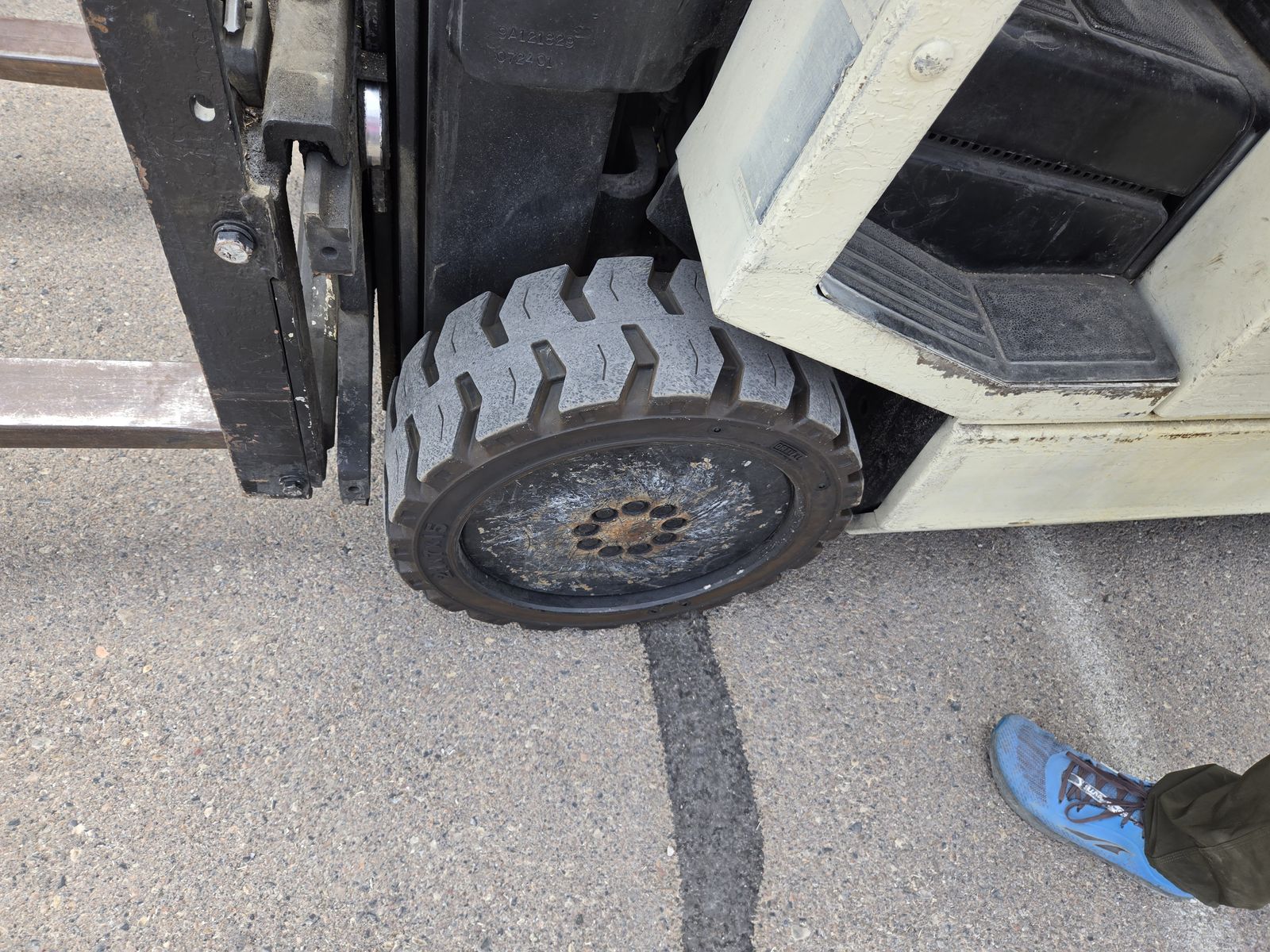 We have an electric Crown forklift. The model number is 40FCTT and it was manufactured in 2001. It has sideshifting forks, which can be very helpful. We got brand new tires on it a year or two ago and it has been used 95% indoors since then.