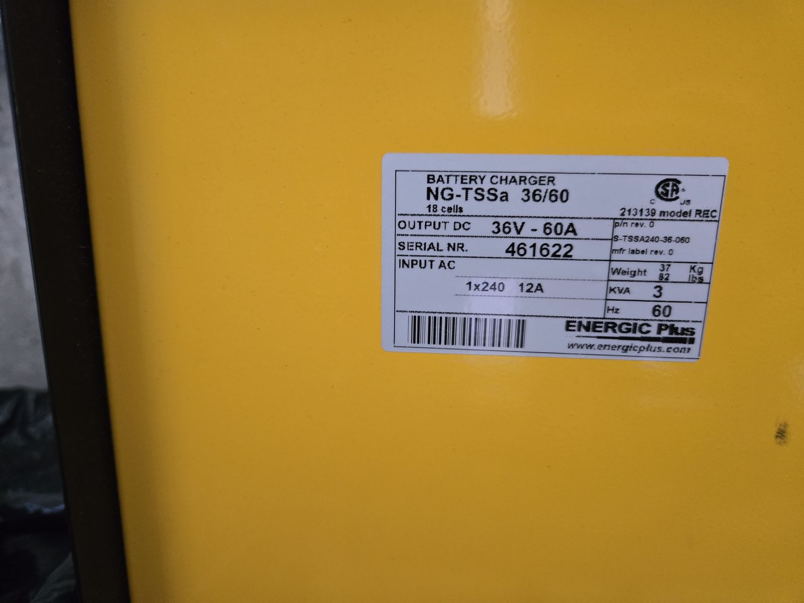 We also have two forklift chargers for it. One is for 3 phase and one is for 240 V. An additional $500 per forklift charger.