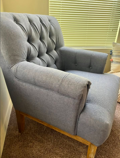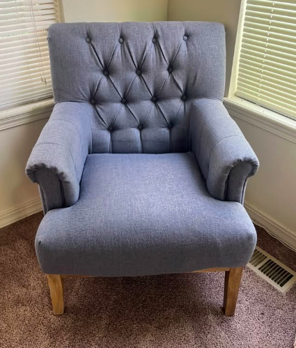 VenmoElegant plush blue chair with a high-end look and cozy texture. Features a rich color and modern silhouette. (Originally bought for $250).