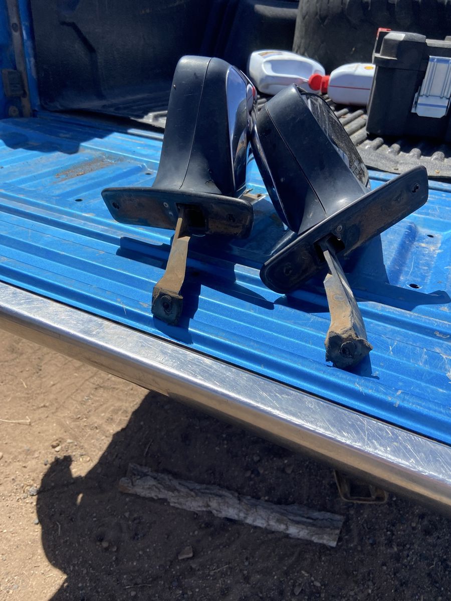 These mirrors came off my 94 F-150. I got a different style so I don’t need them. The driver side does have one crack down the middle. I also have all the hardware for them.