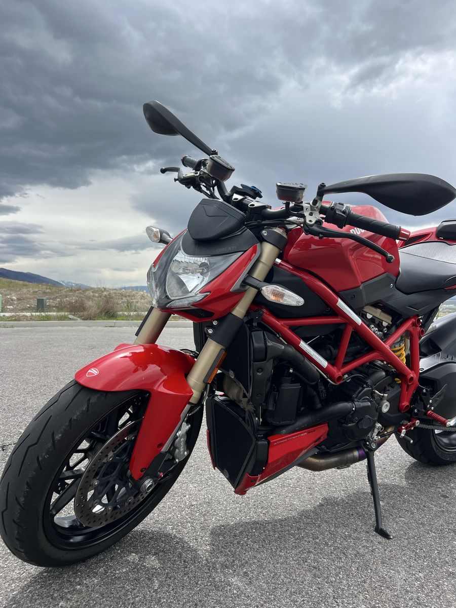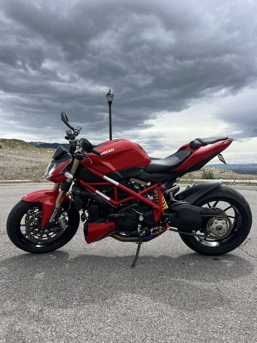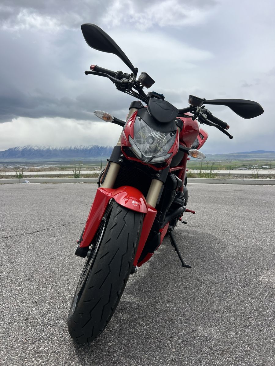 This is my 2015 Ducati Streetfighter 848. Engine size is 848cc. Current mileage is 8,300 on the dash. Will go up as I ride. Regular oil changes have been done and service lights removed by dealerships. And regular maintenance to the chain. Tires have a few hundred miles, should be good for a while. Comes with two keys, and a bike stand for the bike. Does need a new air intake temperature sensor. From the Ducati dealer is $60.