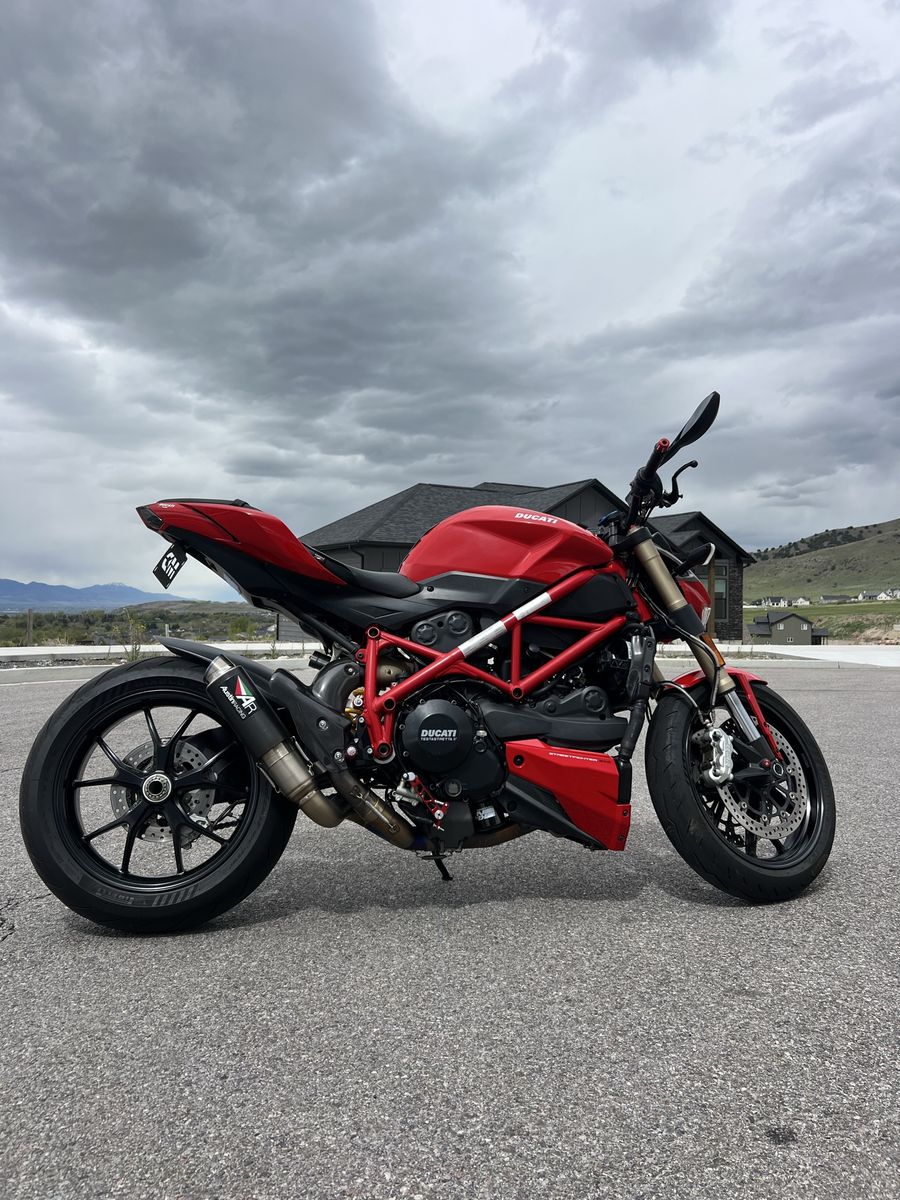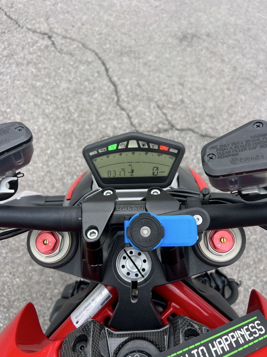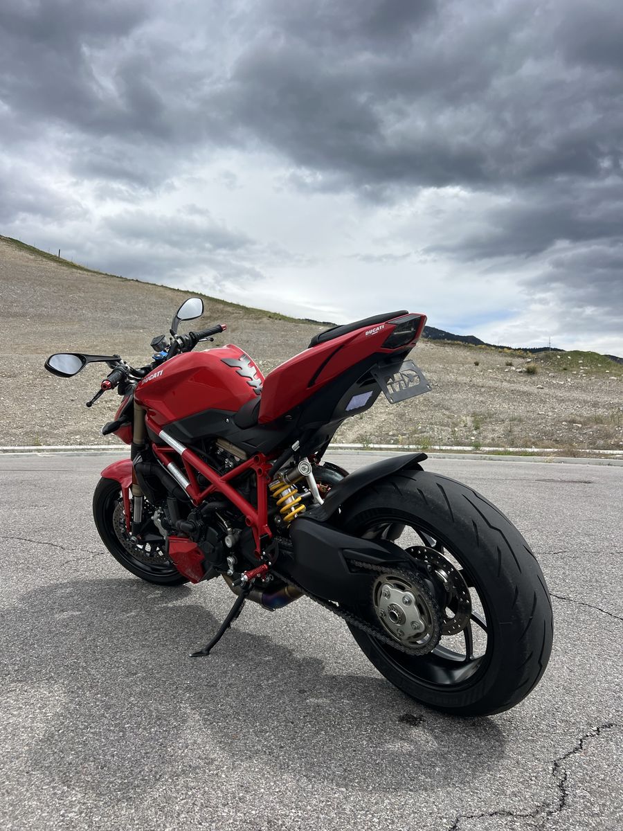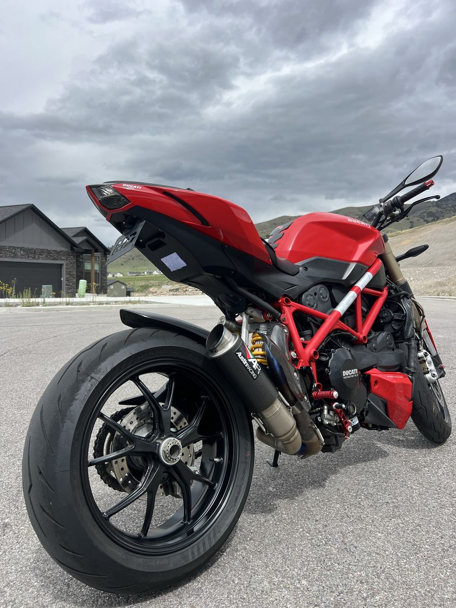 This is my 2015 Ducati Streetfighter 848. Engine size is 848cc. Current mileage is 8,300 on the dash. Will go up as I ride. Regular oil changes have been done and service lights removed by dealerships. And regular maintenance to the chain. Tires have a few hundred miles, should be good for a while. Comes with two keys, and a bike stand for the bike. Does need a new air intake temperature sensor. From the Ducati dealer is $60.