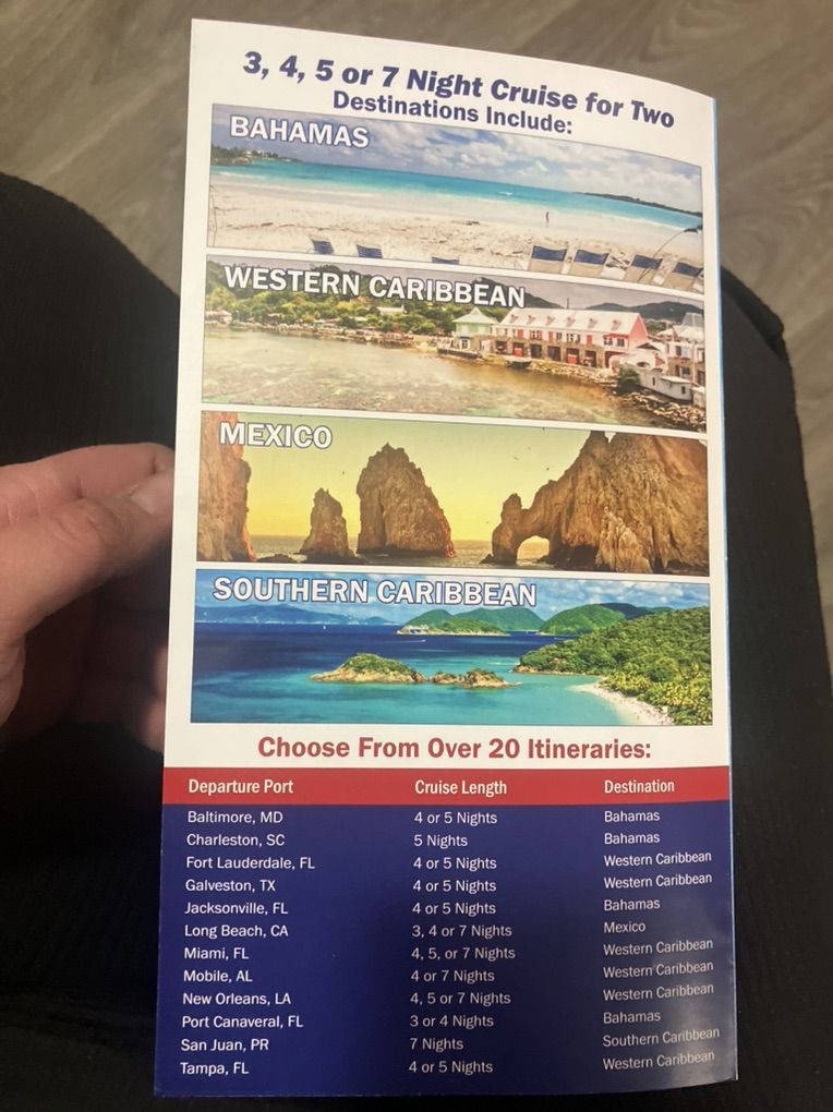 GooglePayI brought a cruise for two for my son it’s a like a gift certificate so it can be put into whoever’s name but he and his girl are not 21 years old and I guess you have to be 21 years or older cruise and I didn’t know that at the time of buying it for him. so he doesn’t want it and so I am wanting to sell it to someone that would want to use it and enjoy it. I paid $800.00 each person I am asking $ 550 for it the only thing you pay for is to get to the ship and $100.00 fully refundable reservation deposit. I only want serious buyers this isn’t a scam if you want it I can help you set it in your name please let me know ty