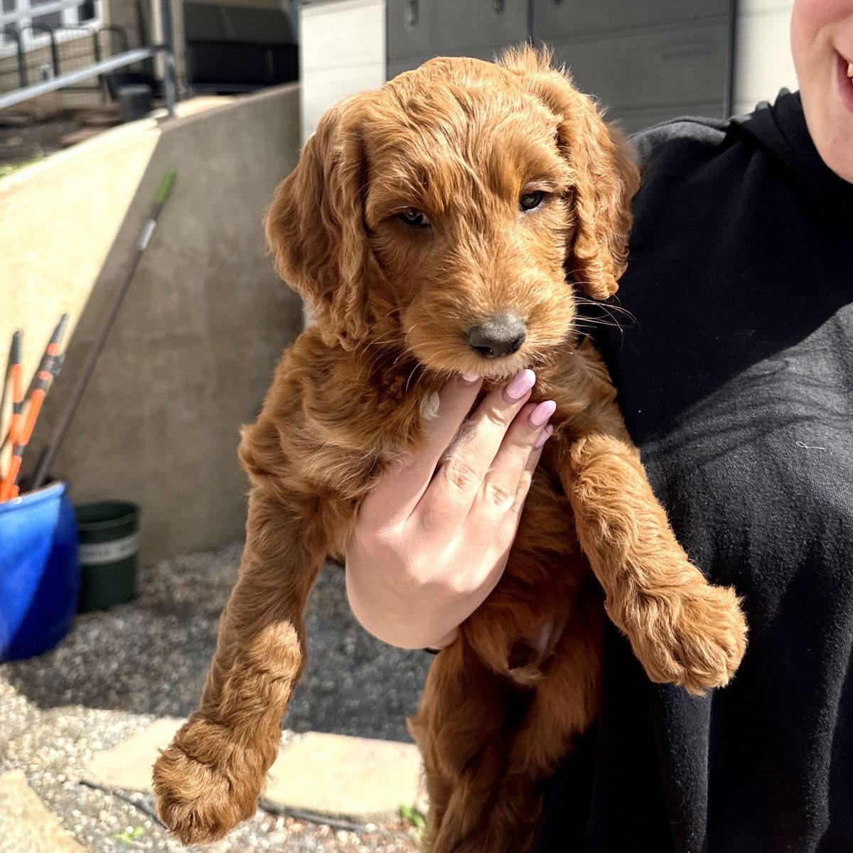 Teddy (Red) The heart of the litter. Teddy carries a naturally calm, intuitive presence with a true therapy-quality temperament. He is gentle, affectionate, and deeply people-focused—an ideal companion for those seeking a steady, emotionally attuned dog.
