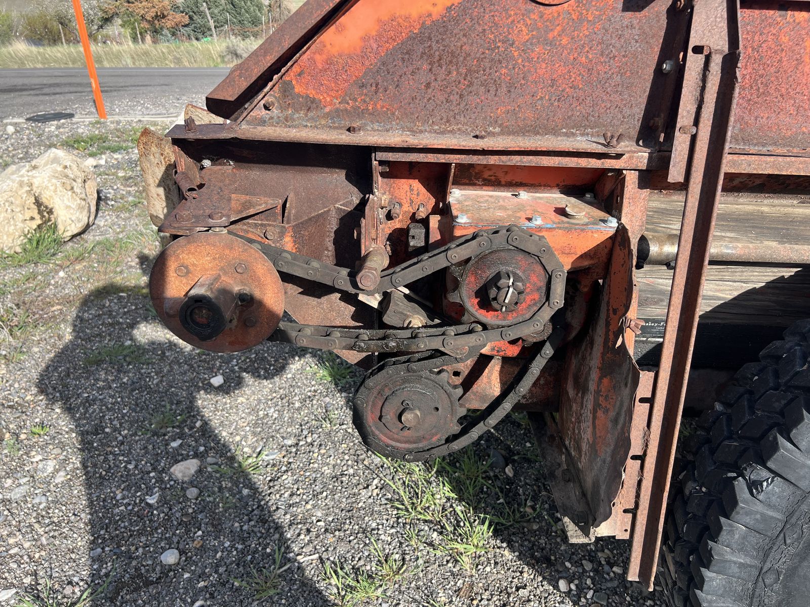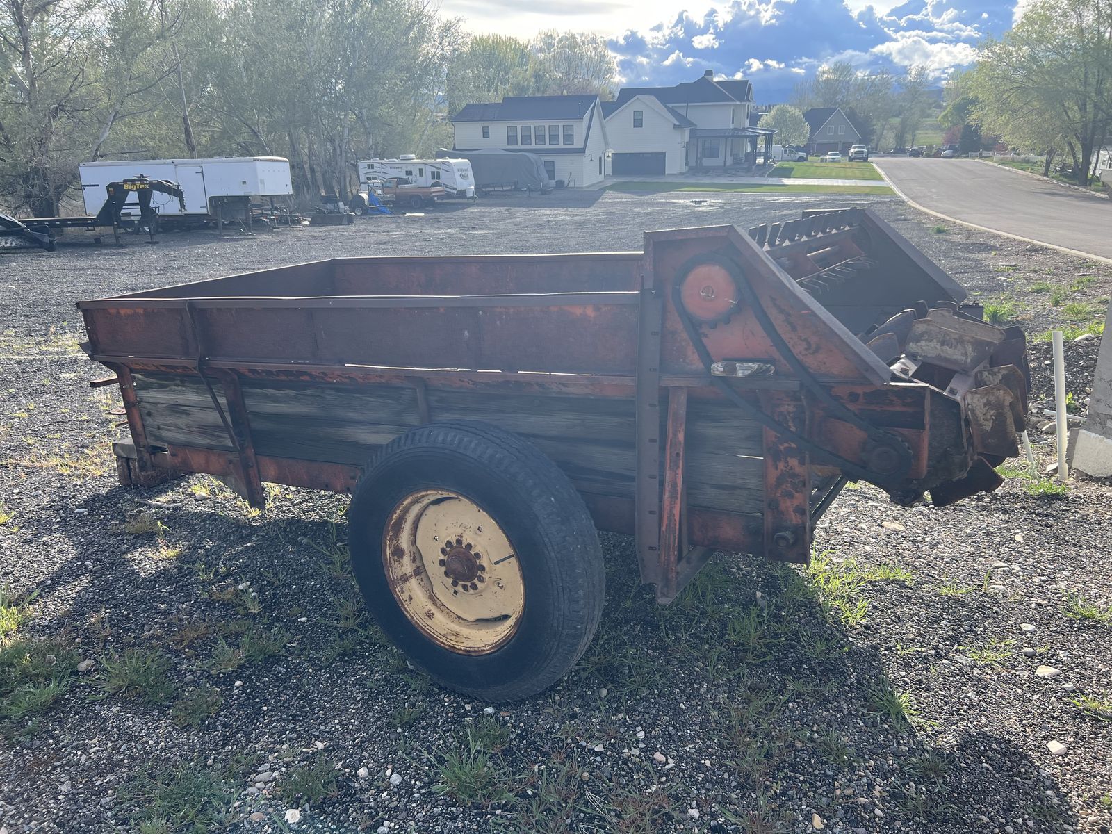 VenmoMassey Ferguson Manure Spreader MF-18 The gear box is all new. Johnson tractor did all the gear box . The wood on the floor in the trailer is good. the bed is 10' long 4.5' wide and 25" tall.